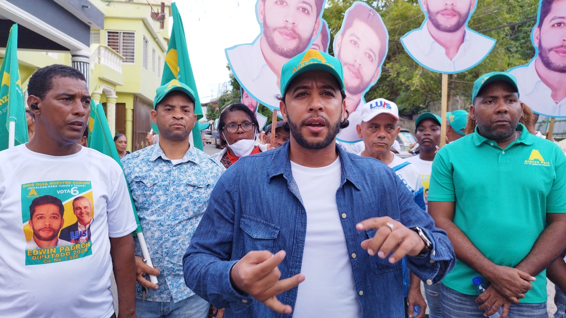 El candidato a diputado por la Circunscripción número 3, del municipio Santo Domingo Este, representante del Partido Alianza País (AlPaís), Edwin Padrón, encabezó un multitudinario mano a mano que se transformó en una vibrante caravana en el sector Cancino Adentro.