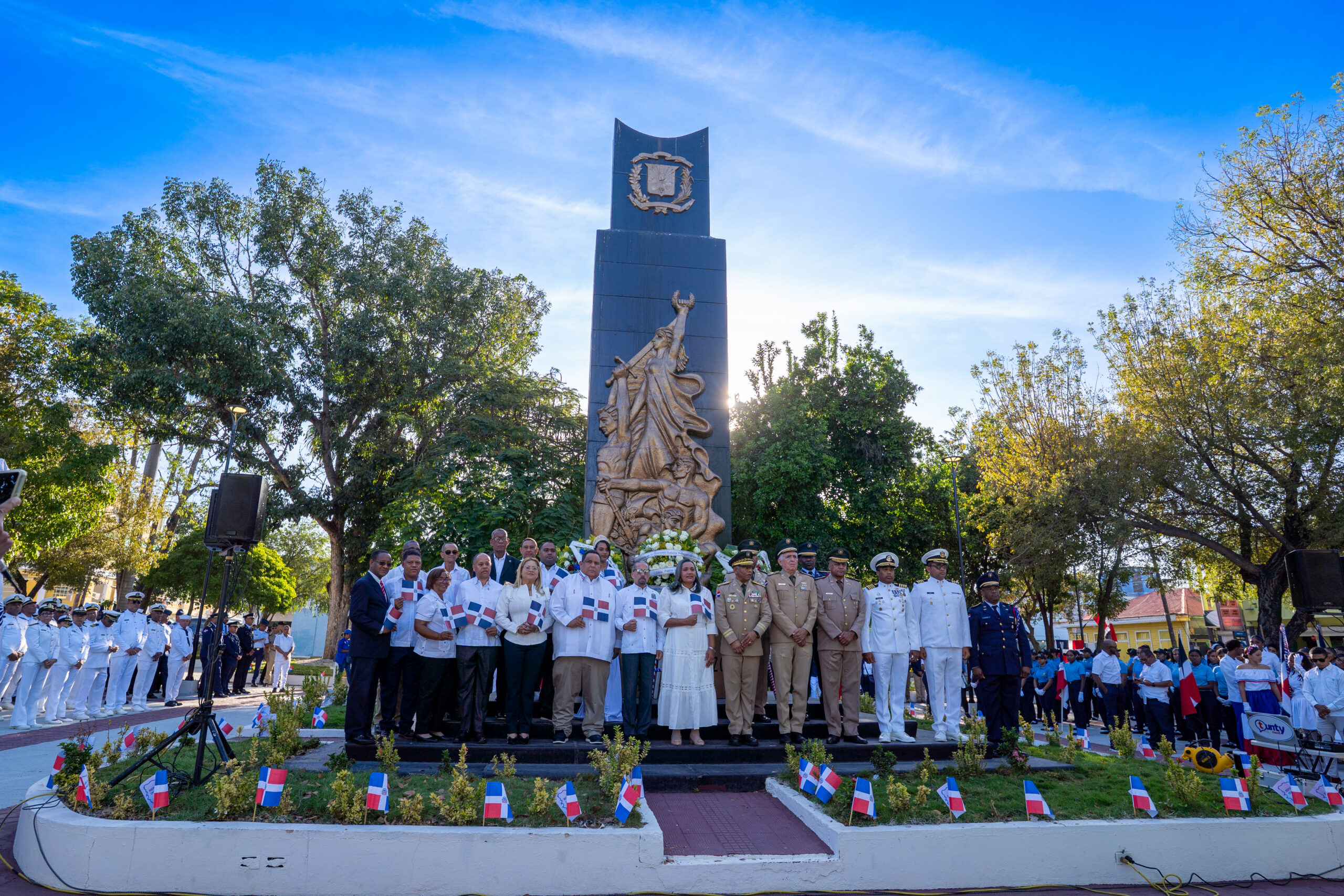 El acto, celebrado en el Parque Duarte de Azua, contó con la presencia del presidente de la República, Luis Abinader, junto a autoridades civiles y militares, incluyendo representantes del Ministerio de Defensa, el Ministerio de Educación, la Gobernación Provincial y el Ayuntamiento local.