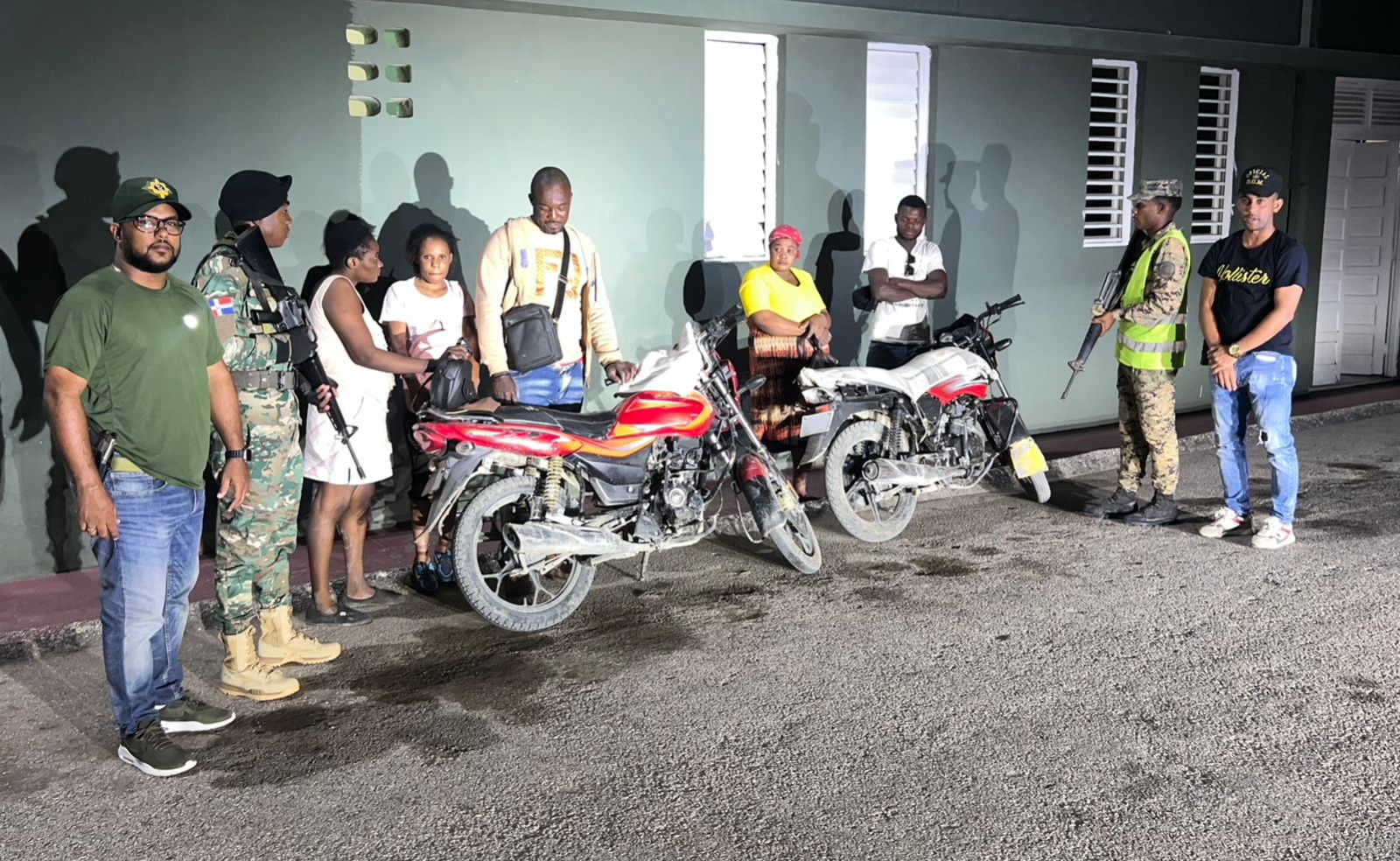 En las últimas horas el Ejército de República Dominicana arrestó a siete 7 motociclistas, entre ellos cinco 5 dominicanos y dos 2 haitianos, mientras transportaban a 23 extranjeros con estatus migratorio ilegal.