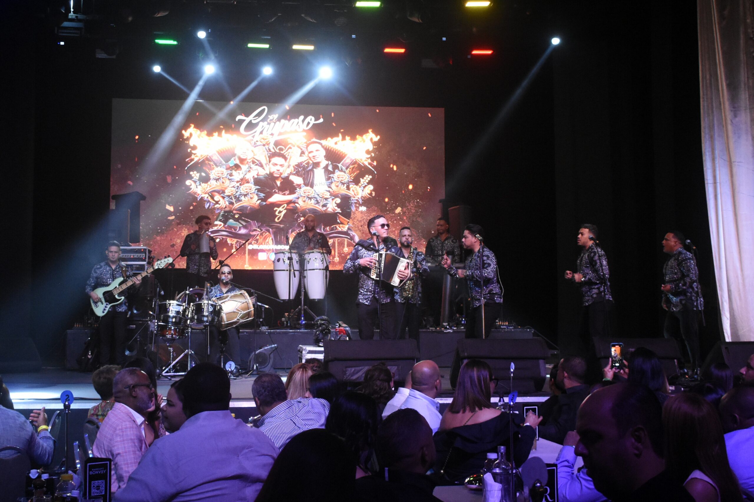El primero en subir a escena fue El Grupaso, a las 10:45 de la noche, abriendo con el tema “Quién” y conquistando de inmediato al público con su mezcla de merengue típico tradicional y tecno-típico moderno, respaldado por una banda impecable.