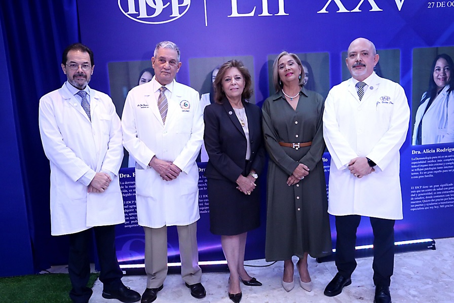Además, las doctoras Mariel Isa Pimentel, presidenta de la Sociedad Dominicana de Dermatología, Elfida Sánchez, directora adjunta del IDCP, y el doctor José Joaquín Puello, orador invitado.