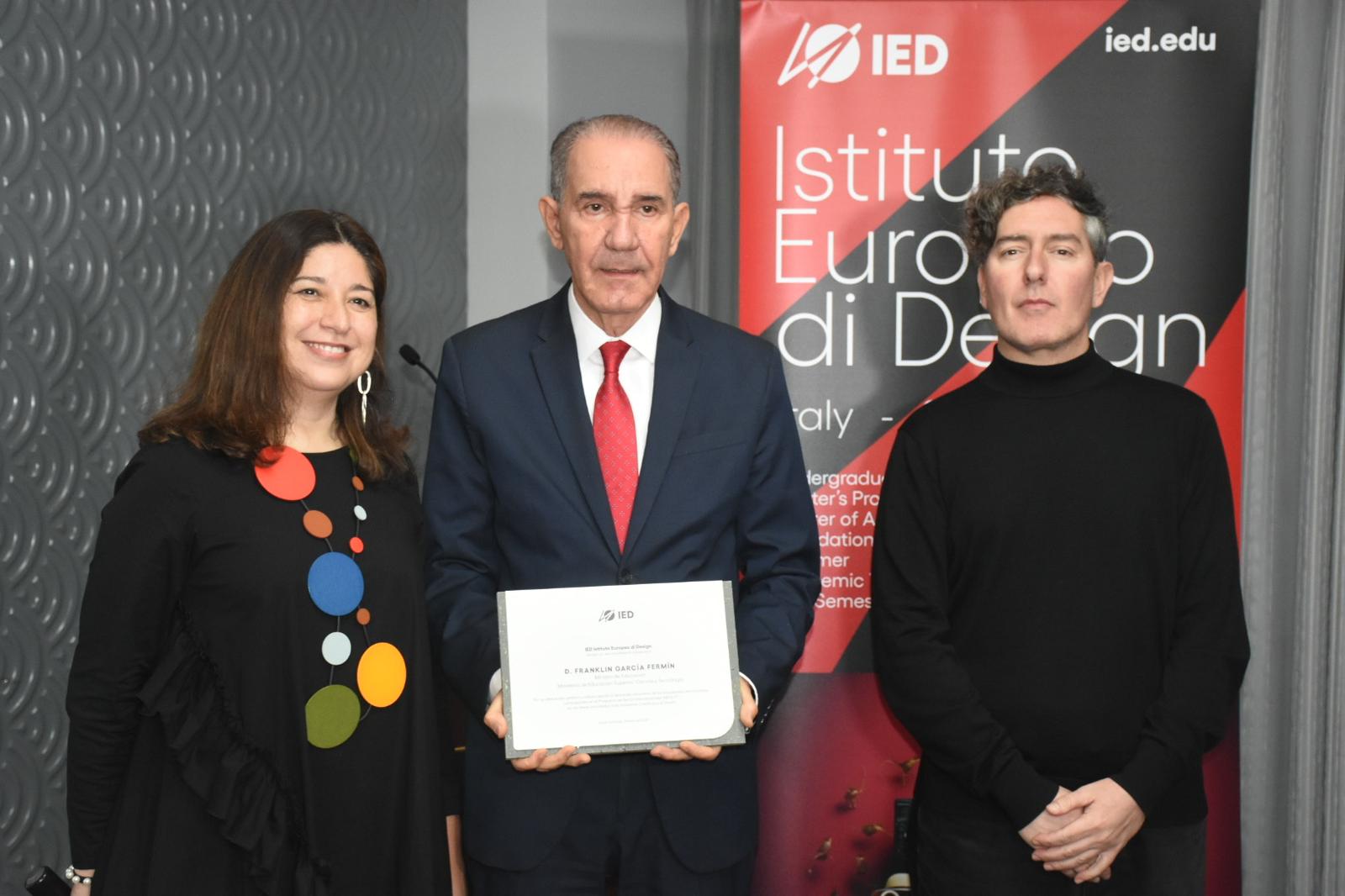 SANTO DOMINGO. – El Istituto Europeo di Design(IED), reconoció al ministro de Educación Superior, Ciencia y Tecnología, el doctor Franklin García Fermín, por sus aportes al sistema de la educación superior de la República Dominicana, por su gestión, liderazgo y el fortalecimiento en el área del saber.