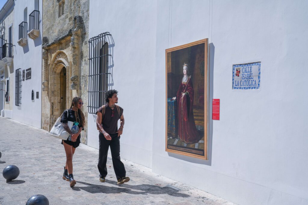 El Centro Cultural Taíno Casa del Cordón asume un rol protagónico en este circuito, exhibiendo en su emblemática fachada la reproducción a escala real de la obra “Isabel la Católica” de Luis de Madrazo y Kuntz, conectando la historia del inmueble con el legado artístico que resguarda Madrid.