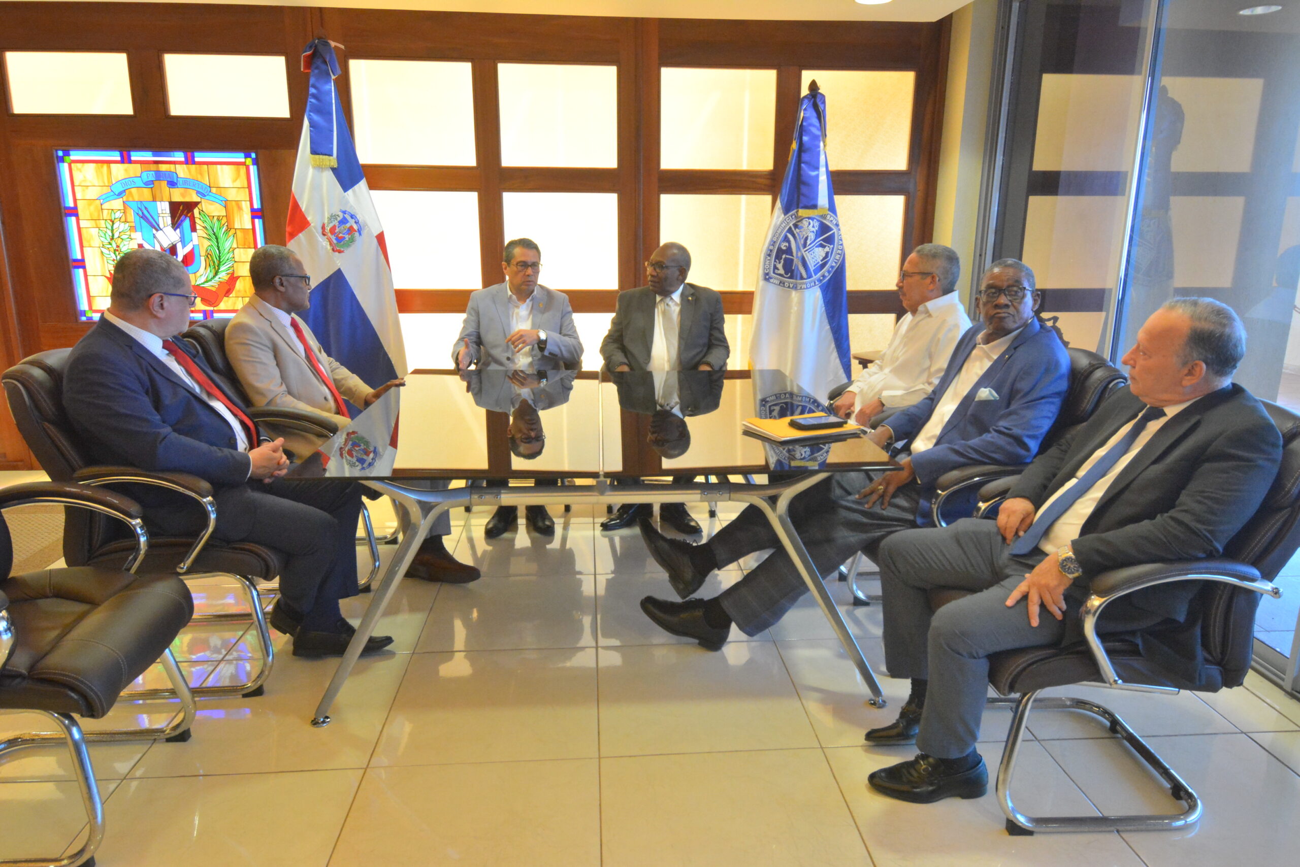 En el encuentro estuvieron presentes, por parte de la UASD, los Maestros Ramón Desangles Flores, Vicerrector Administrativo; Pablo Valdez, Secretario General; Julio Borbón, Decano de la Facultad de Ciencias Agronómicas y Veterinaria; Fidel Munich, Vicedecano de Artes; y José Casado, Subsecretario General.