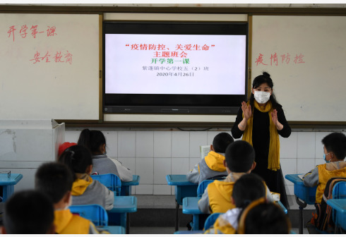 HEFEI, 26 abril, 2020 (Xinhua) — Estudiantes toman una clase en una escuela en el poblado de Zipeng del distrito de Feixi en Hefei, provincia de Anhui, en el este de China, el 26 de abril de 2020.