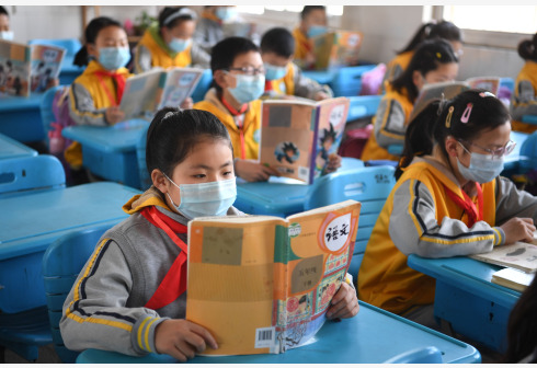 Los estudiantes de primaria en los grados 4-6, y los estudiantes de secundaria y preparatoria en el primer grado regresaron el domingo a la escuela en Hefei.