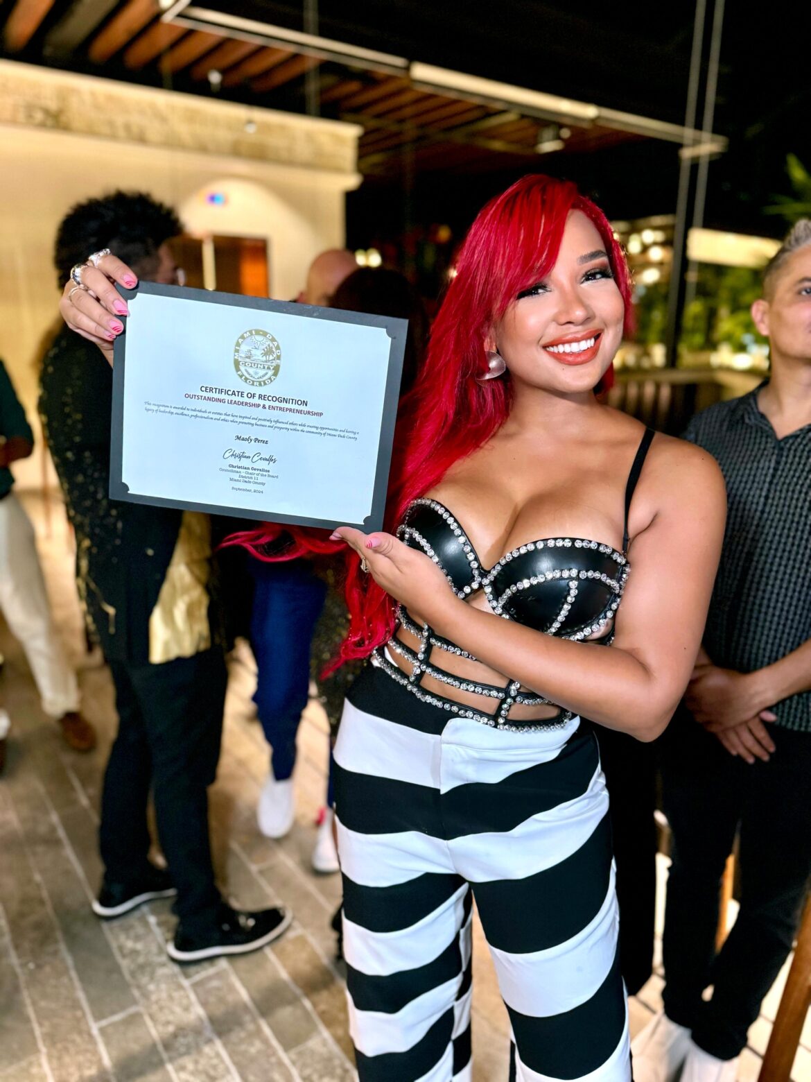 El homenaje fue entregado por el comisionado del Distrito 11 de Miami Dade Christian Cevallos, quien destacó la trayectoria de Maoly y su dedicación a la música. «Maoly no solo representa el talento latino, sino también la pasión y el esfuerzo que nuestros artistas invierten en su arte.