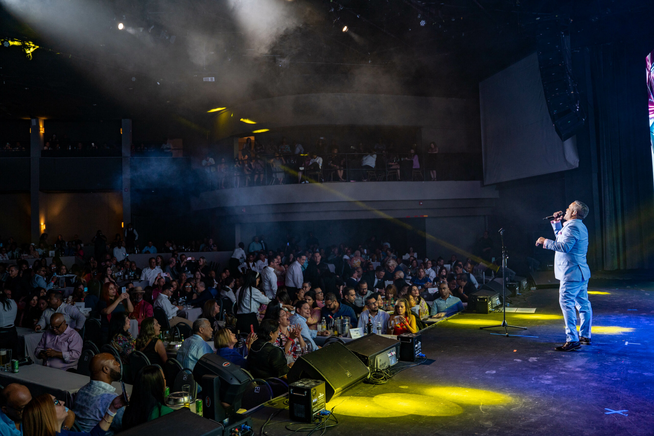 “Quiero realizar un reconocimiento a un gran artista con talento y calidad. Permítanme cantarles esta canción de Don Juan Luis Guerra”, manifestó previo a interpretar “Estrellitas y duendes”.