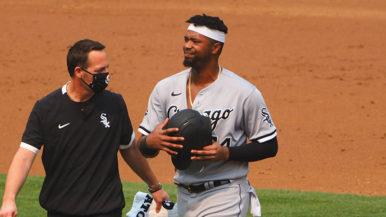 Eloy Jiménez, jardinero izquierdo de los Medias Blancas de Chicago, se lastimó el hombro izquierdo el miércoles, cuando saltó en un intento por atrapar una pelota frente al muro.