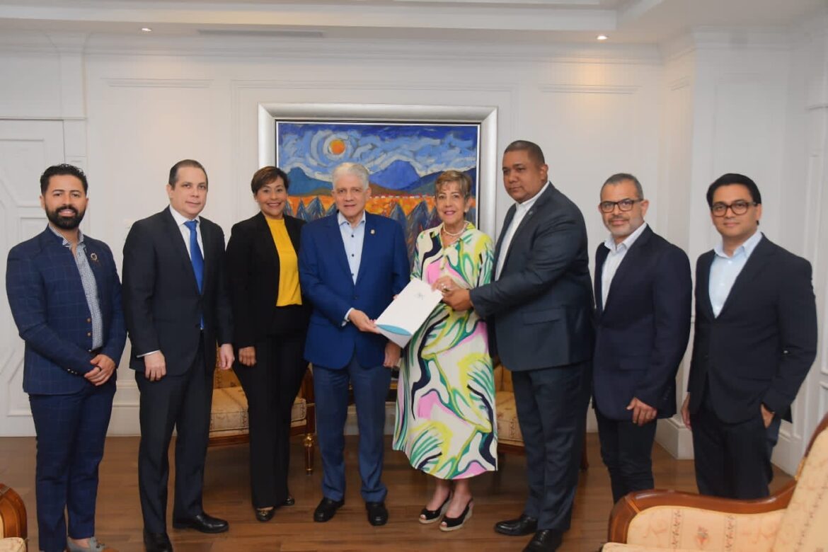 Una comisión encabezada por Sandy Filpo, presidente de la Asociación de Comerciantes e Industriales de Santiago (ACIS), y Kathy Morillo, directora ejecutiva de la Asociación de Hoteles, Restaurantes y Empresas Turísticas del Norte (ASHONORTE), ha entregado una iniciativa legislativa al presidente del Senado, Eduardo Estrella, y a la presidenta de la Comisión de Turismo del Senado, Gine Burnigal.