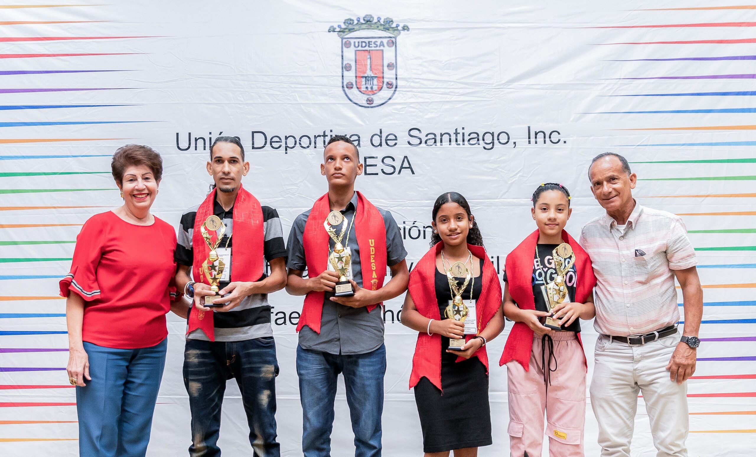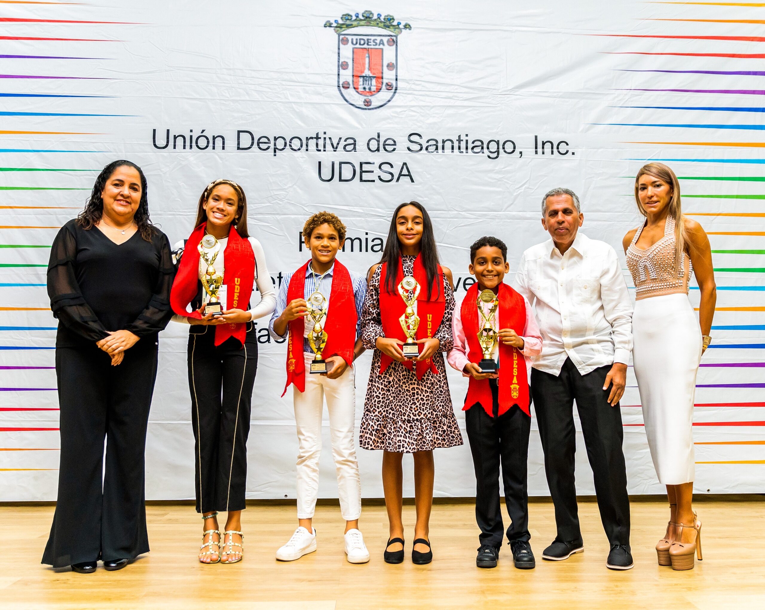 Los tenismesistas infantiles, Arianna Estrella y Ramón Vila Mena, así como los juveniles, Nahuel Cruz García, de ciclismo y Madeline Payamps, de karate, fueron galardonados como “Los Atletas del año” en la gran gala XIV Premio Infantil y Juvenil “Rafael -Panchón- Tejada”, que realizó el pasado viernes, la Unión Deportiva de Santiago, Inc. (UDESA), en el auditorio Manuel Arsenio Ureña, de la Universidad Tecnológica de Santiago (UTESA).