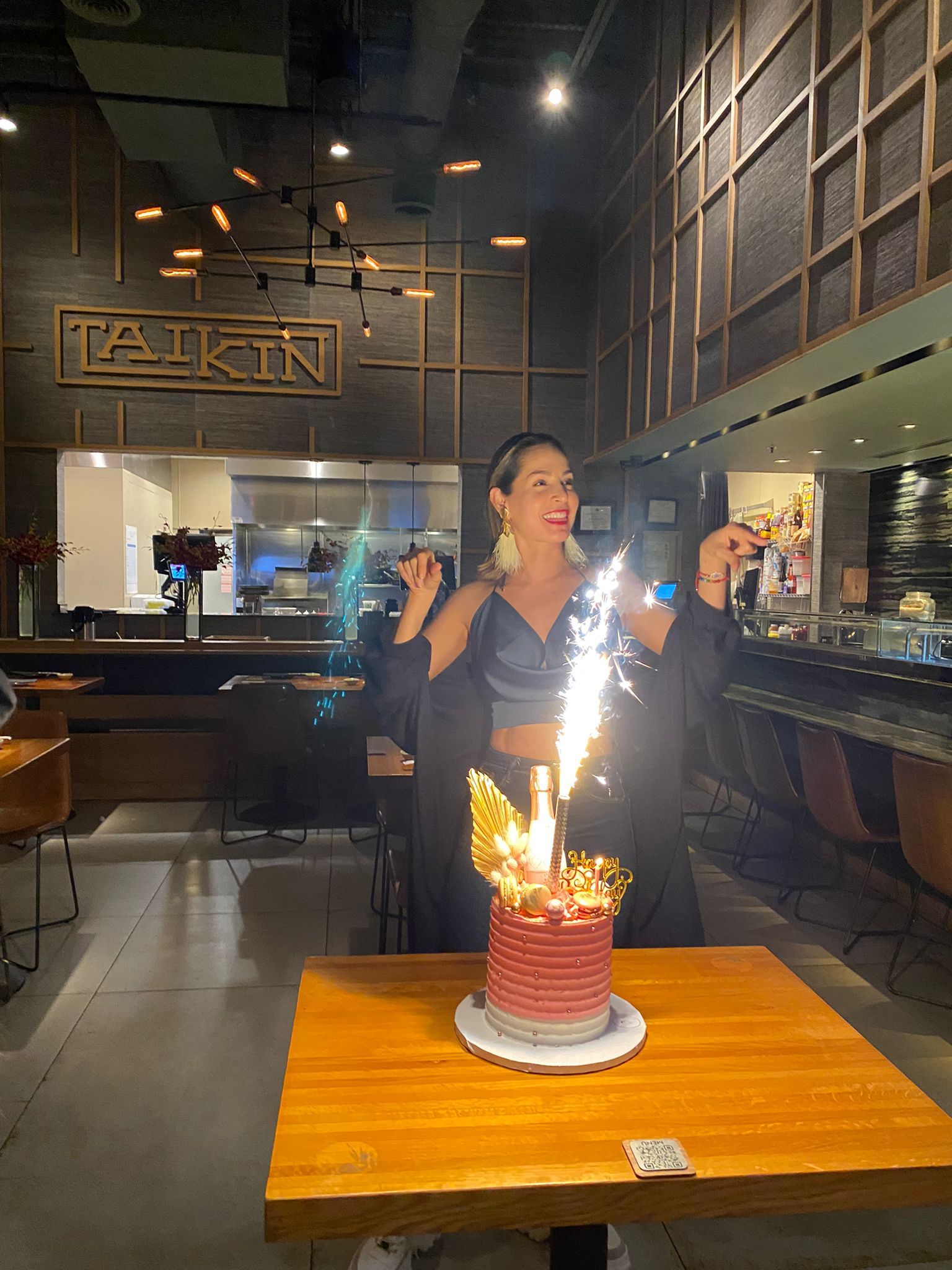 De vacaciones por Miami, tras finalizar las grabaciones de la nueva versión de “Café con Aroma de Mujer” en Telemundo, Colombia, la reconocida actriz fue sorprendida por su esposo, el también intérprete colombiano Sebastián Caicedo, sus familiares y amigos del medio artístico en el restaurante posicionado como número uno del Doral en todas las categorías de Trip Advisor con una evaluación de 5 estrellas, Taikin Asian Cuisine.