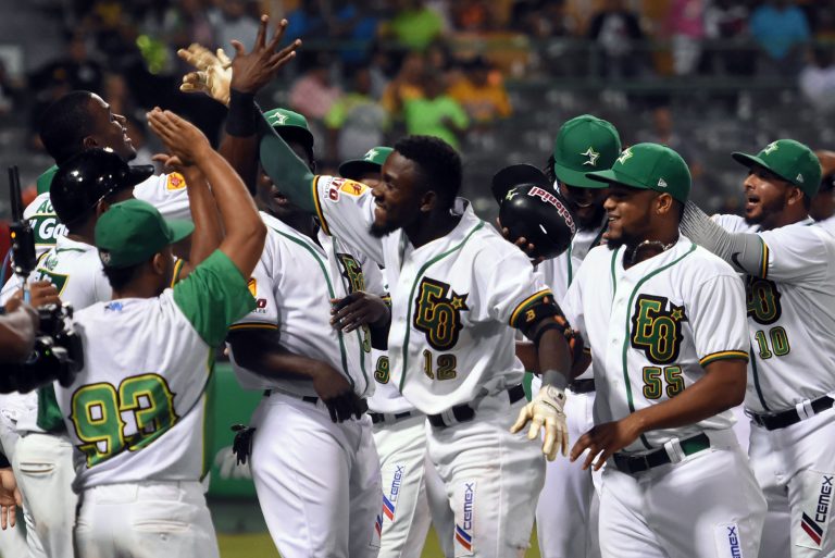 En el séptimo el equipo de San Pedro amplió su ventaja con jonrón de Aneury Tavarez por el jardín derecho. Los verdes agregaron cuatro carreras en el octavo: Alfredo Reyes pegó doblete contra la pared del jardín derecho; Gustavo Núñez, sencillo al jardín izquierdo, remolcador de la quinta de las Estrellas; Núñez se robó la segunda; Lake recibe transferencia intencional; José Fernández conectó sencillo al jardín izquierdo remolcador de la sexta; Gabriel Guerrero, doble al jardín derecho empujador de la séptima; Pérez falló con elevado de sacrificio al jardinero central, remolcó la octava.