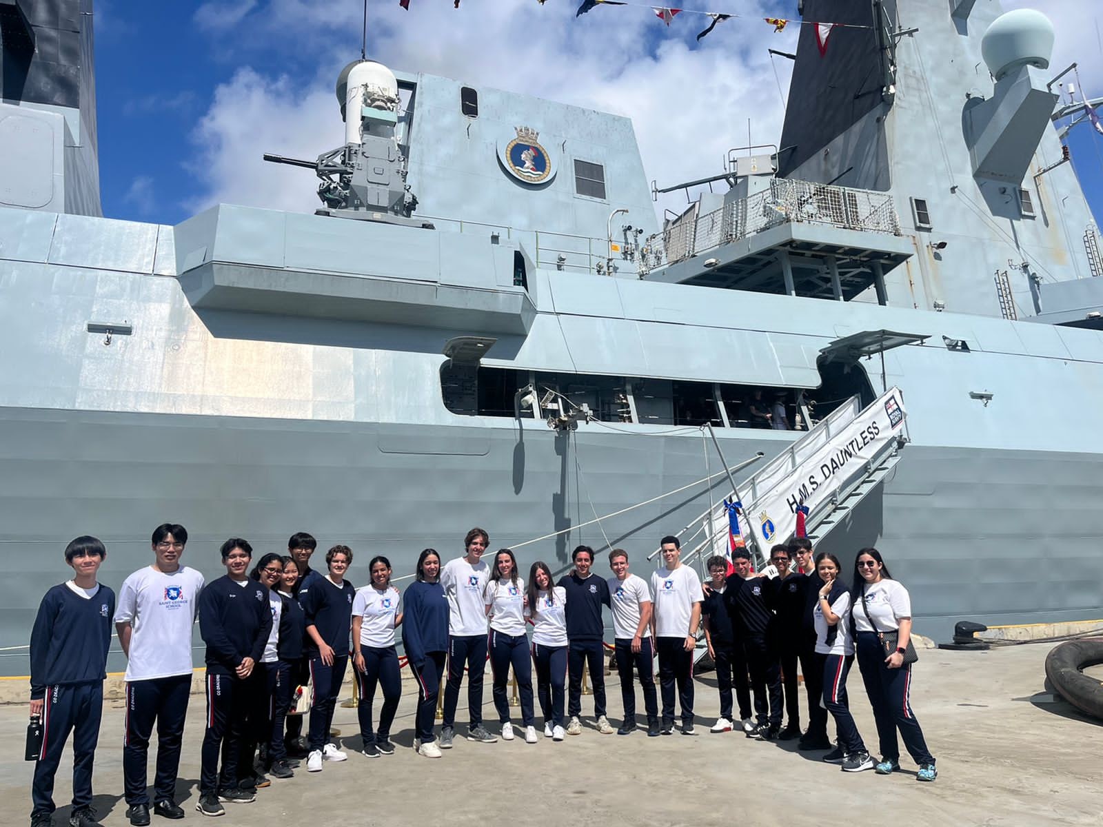 Este grupo de estudiantes tiene un interés particular en las materias STEM (Ciencia, Tecnología, Ingeniería y Matemáticas, por sus siglas en inglés) y están cursando materias como IB Physics y Robótica en Saint George School. Durante la visita, tuvieron la oportunidad de interactuar con miembros de la tripulación del HMS Dauntless, quienes compartieron sus experiencias y conocimientos en las áreas de ingeniería, tecnología y comunicaciones.