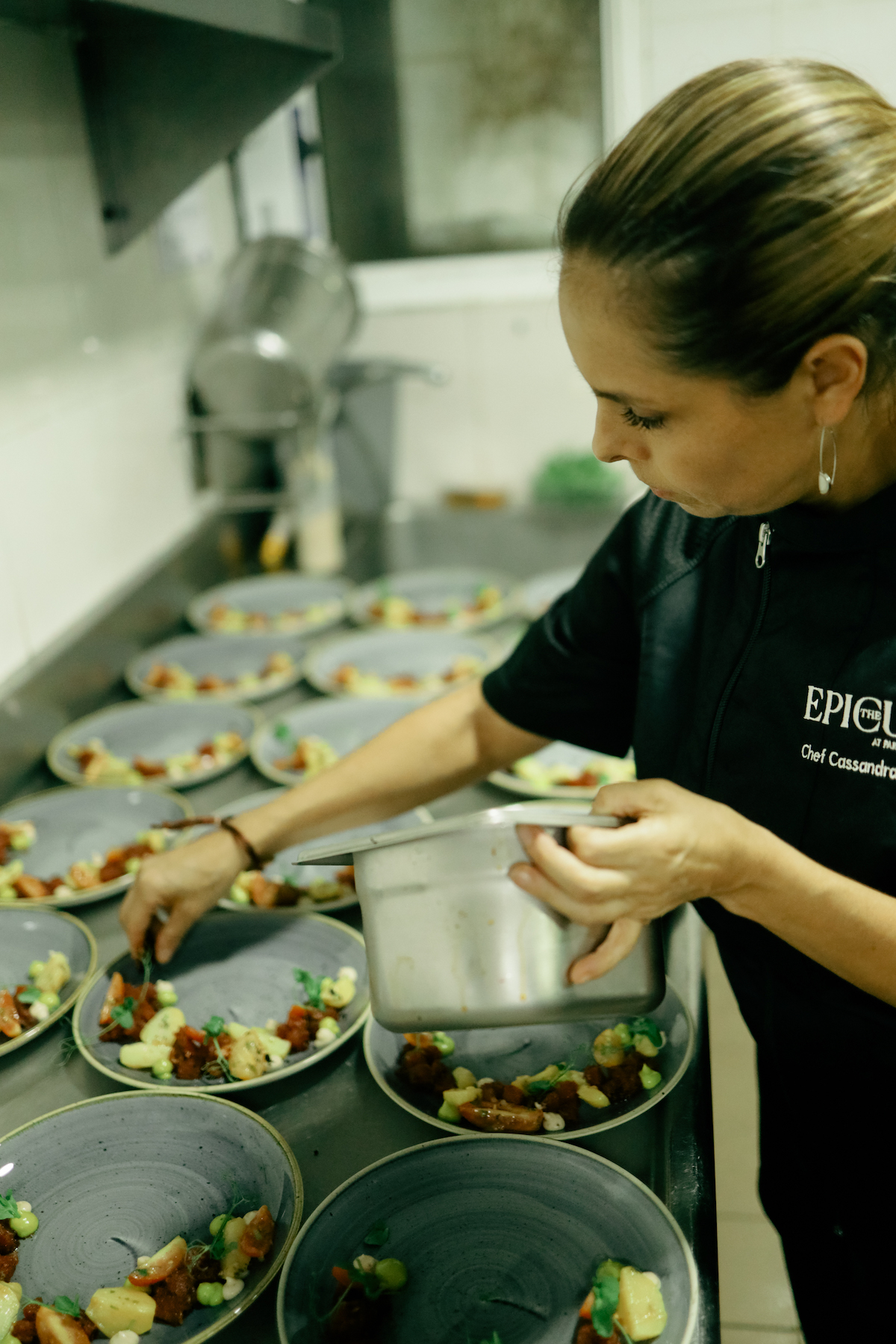 Los invitados a la cuarta edición The Epicure by Paradisus se deleitaron con un menú que ofreció de entrada “Atún Marinado” con cenizas de chiles, tomates mixtos y papitas en vinagreta de echalote, mousse de aguacate y crema de ajo rostizado; “Crab Cake” con salteado de maíz, relish de mango y mayonesa alimonada de habanero tatemado por la Chef Cassandra Beretta, y Cup cake de yuca, huevo de codorniz y espuma de trufa y “Arroz del Mar” por la Chef María Marte.