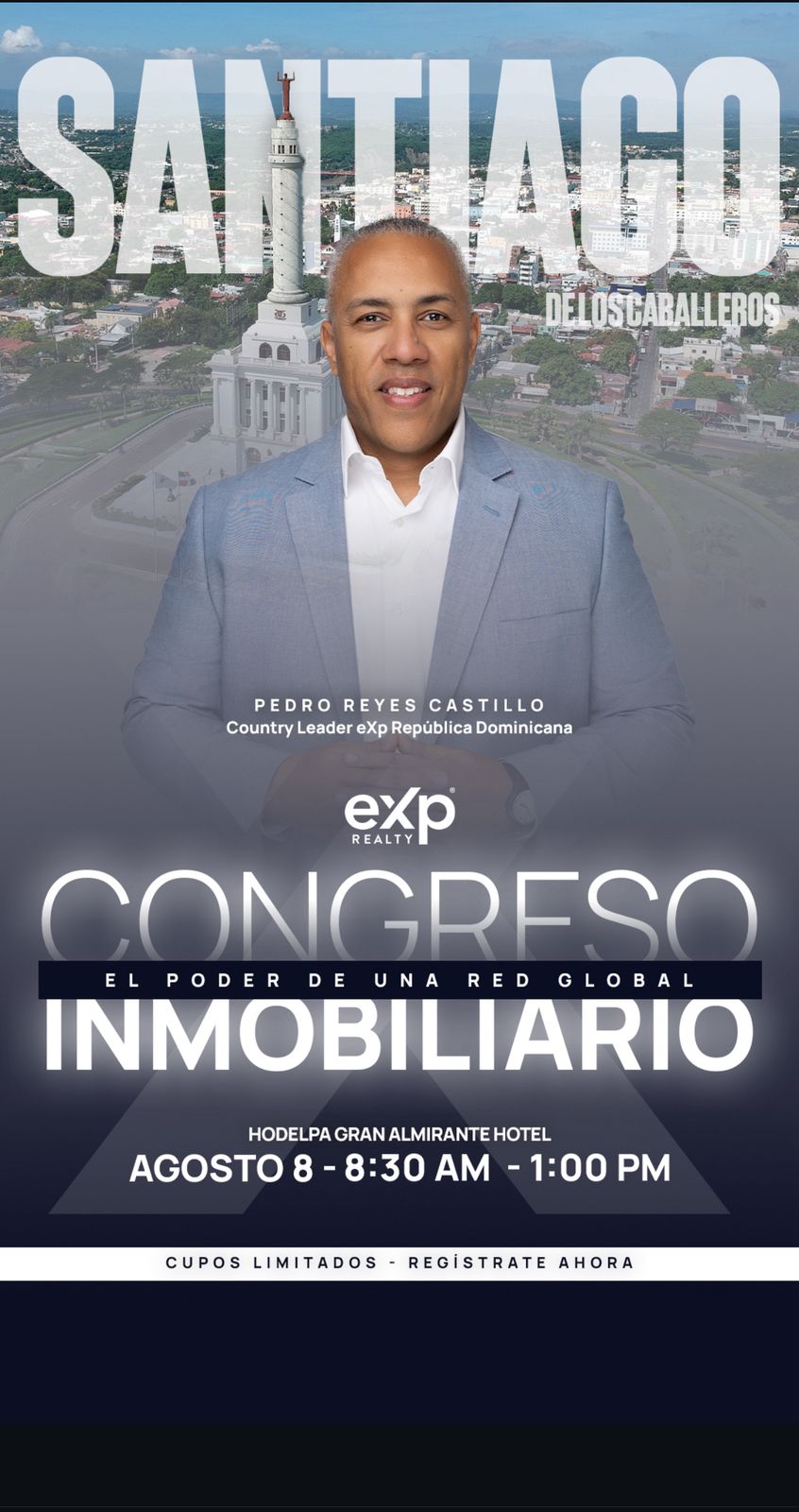 Santiago de los Caballeros, R.D. – El próximo 8 de agosto la ‘Ciudad Corazón’ se convierte en epicentro de la innovación inmobiliaria con la llegada del Congreso Inmobiliario “El Poder de una Red Global”, organizado por eXp Realty República Dominicana, una de las firmas de corretaje digital de mayor crecimiento en el mundo, actividad a realizarse en el Hodelpa Gran Almirante de Santiago.