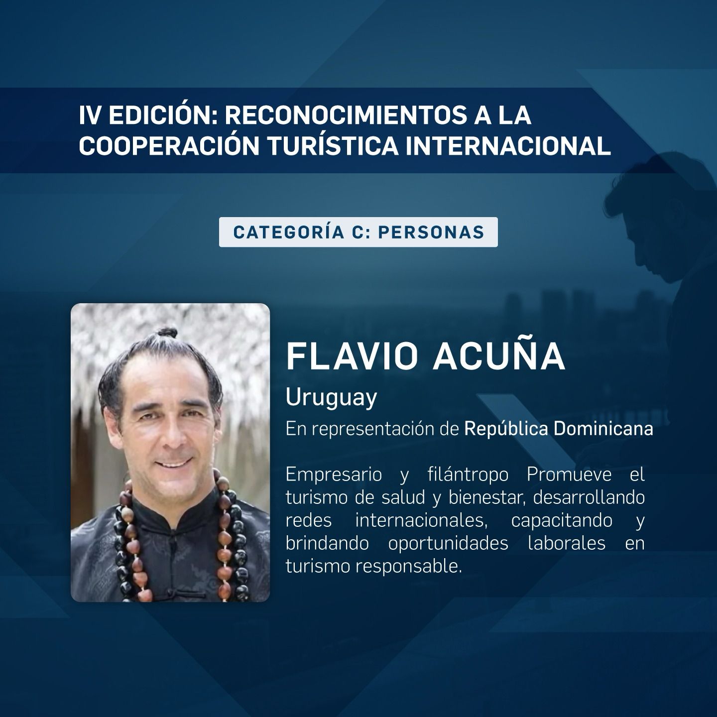 De origen uruguayo y con base en República Dominicana desde hace más de dos décadas, Flavio Acuña ha sido pionero en dar voz al bienestar dentro del sector turístico, impulsando una visión que amplía el relato tradicional del destino más allá del sol y playa. Desde el territorio dominicano, ha representado y proyectado al país en plataformas y espacios internacionales, destacando su potencial como destino de salud y wellness en un contexto de creciente demanda global.