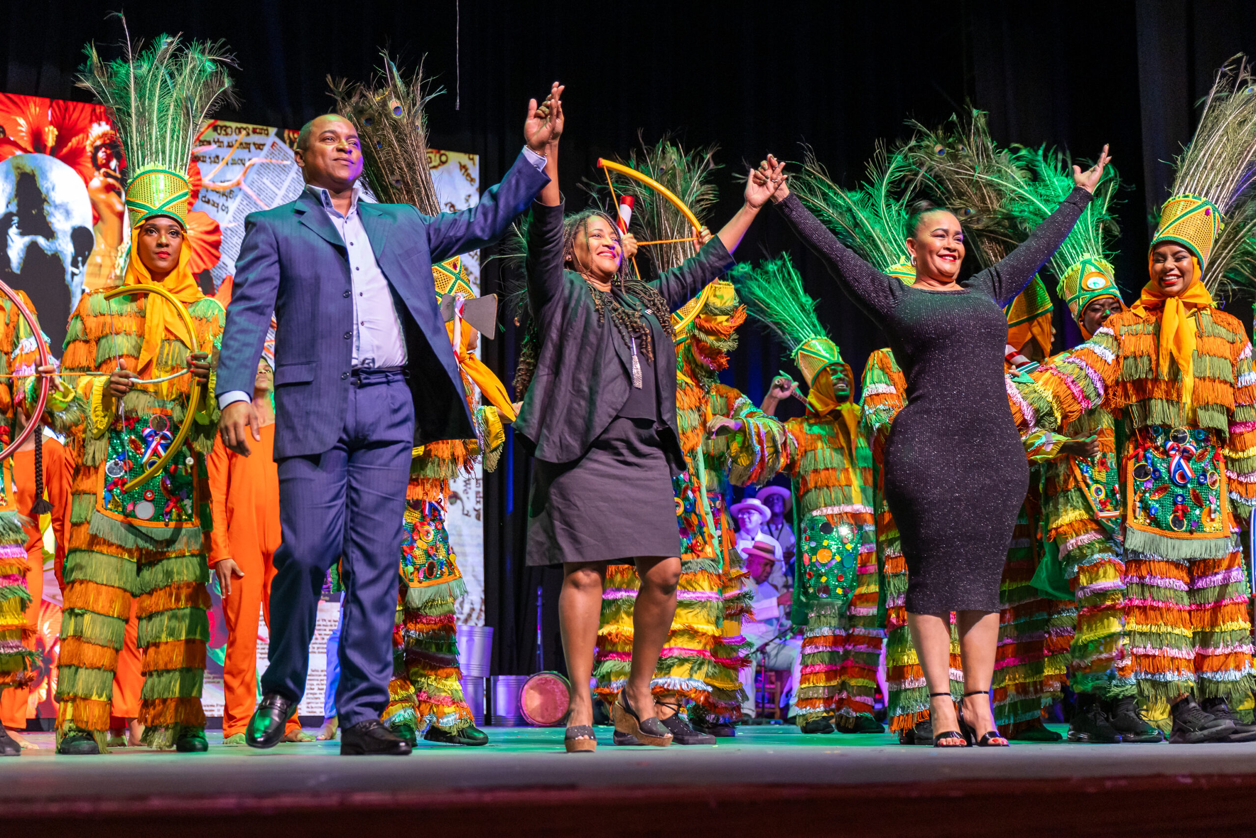 Más de 48 artistas se apoderaron del escenario el viernes, sábado y domingo, ofreciendo un repertorio cuidadosamente seleccionado que incluyó contenido inédito, vestuarios tradicionales y una banda sonora basada en las investigaciones de Lizardo. La puesta en escena exploró las múltiples facetas de la cultura dominicana: la gastronomía, el carnaval, los juegos infantiles y la biodiversidad, elementos que resonaron con el espíritu del público.