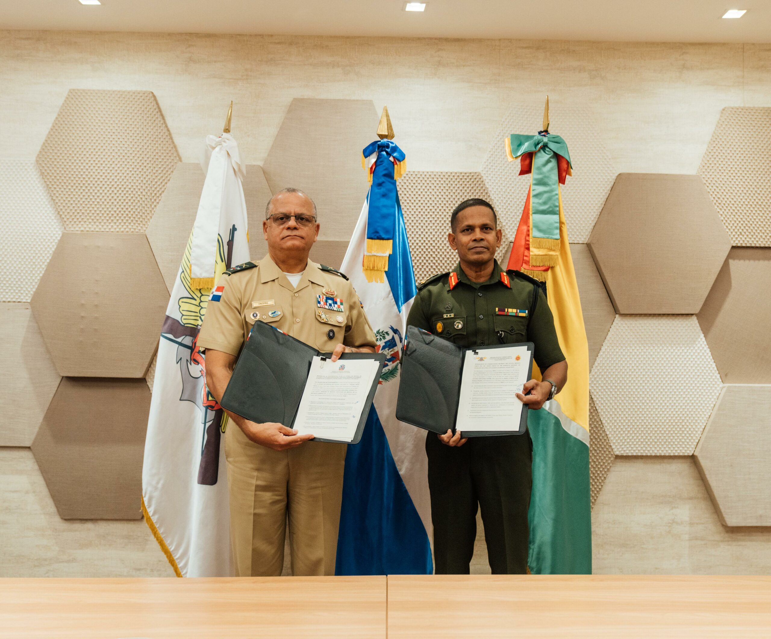 Las Fuerzas Armadas de la República Dominicana y la Fuerza de Defensa de Guyana firmaron un memorándum de entendimiento (MOU) para fortalecer la cooperación bilateral en materia de defensa y seguridad, consolidando alianzas estratégicas ante desafíos comunes.