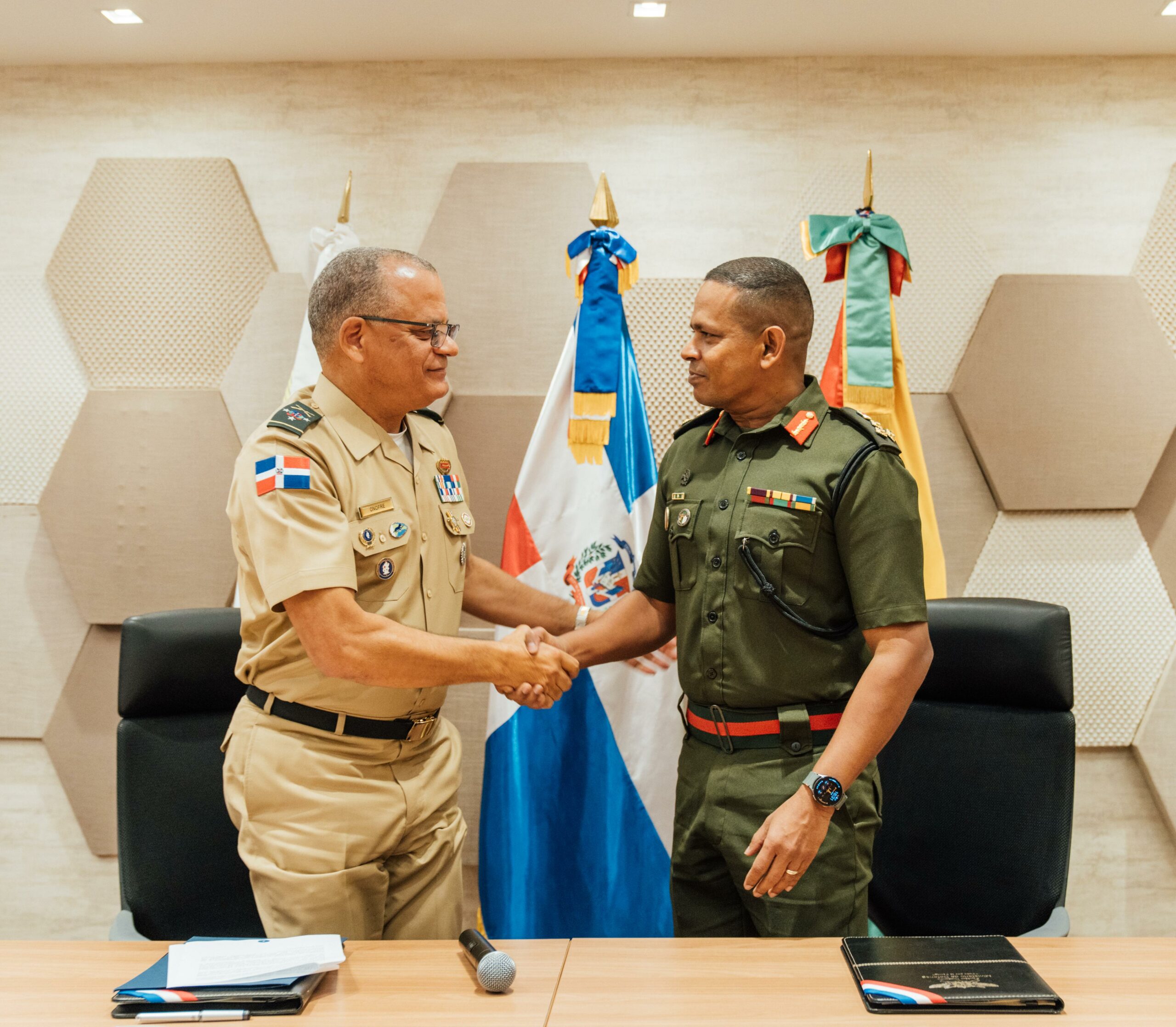 El acuerdo fue suscrito por el ministro de Defensa dominicano, teniente general Carlos Antonio Fernández Onofre, ERD, y el brigadier Omar Khan, jefe de la Fuerza de Defensa de Guyana. A través de este pacto, ambas naciones se comprometen a intensificar esfuerzos conjuntos en la lucha contra el tráfico ilícito en el sector marítimo y las amenazas cibernéticas emergentes.