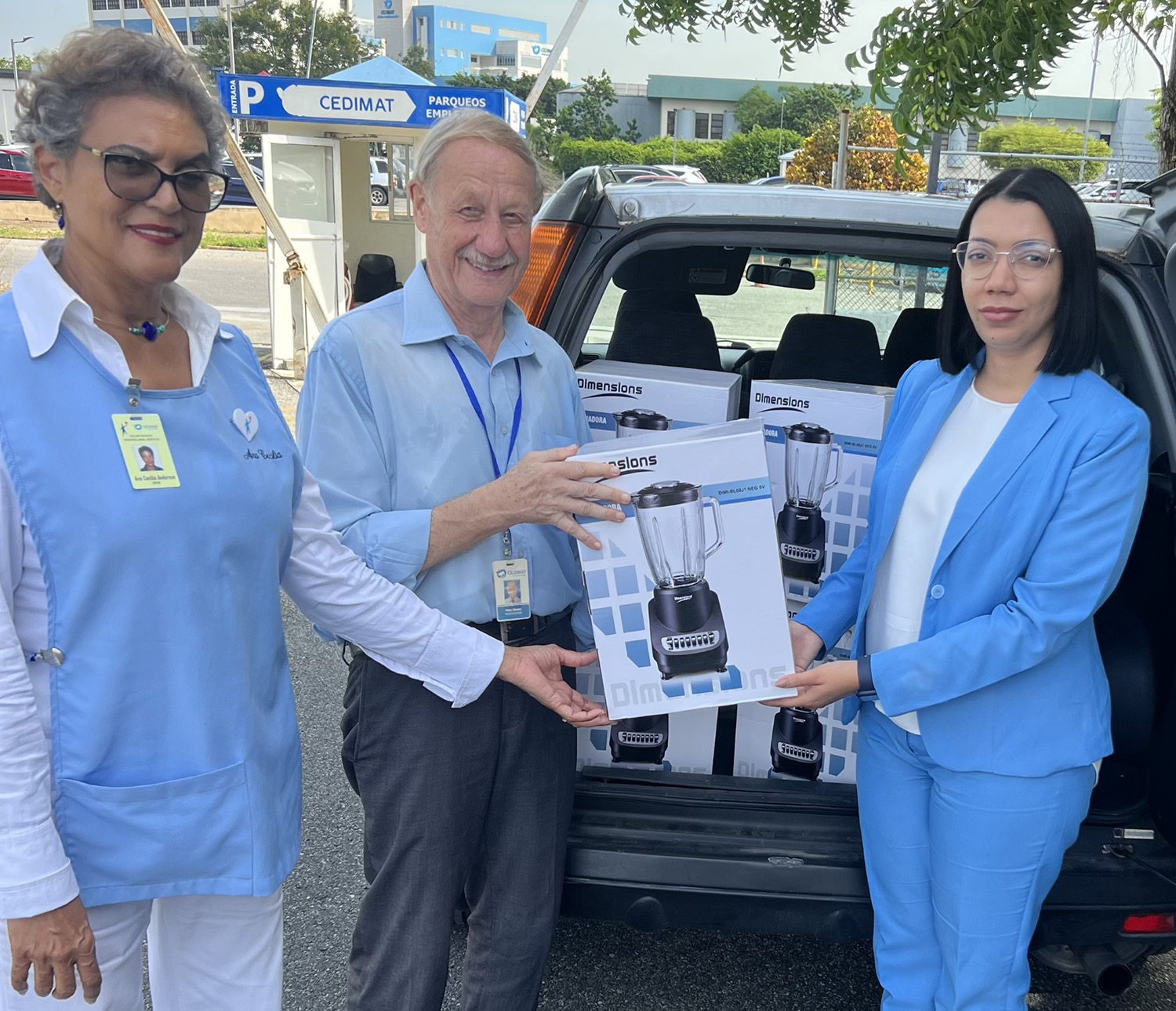 Fundación Juan Ml. Taveras Rodríguez agradece a la Sra. Mary Lama de Melgen por donación de 40 licuadoras a través de las empresas Plaza Lama y Comerciales Fila, las mismas fueron entregadas al Dr. Peter Stoeter, uno de los médicos de CEDIMAT y coordinadores del Proyecto Pkan para ser distribuidas entre los pacientes con la enfermedad ‘‘Ojo de Tigre’’.