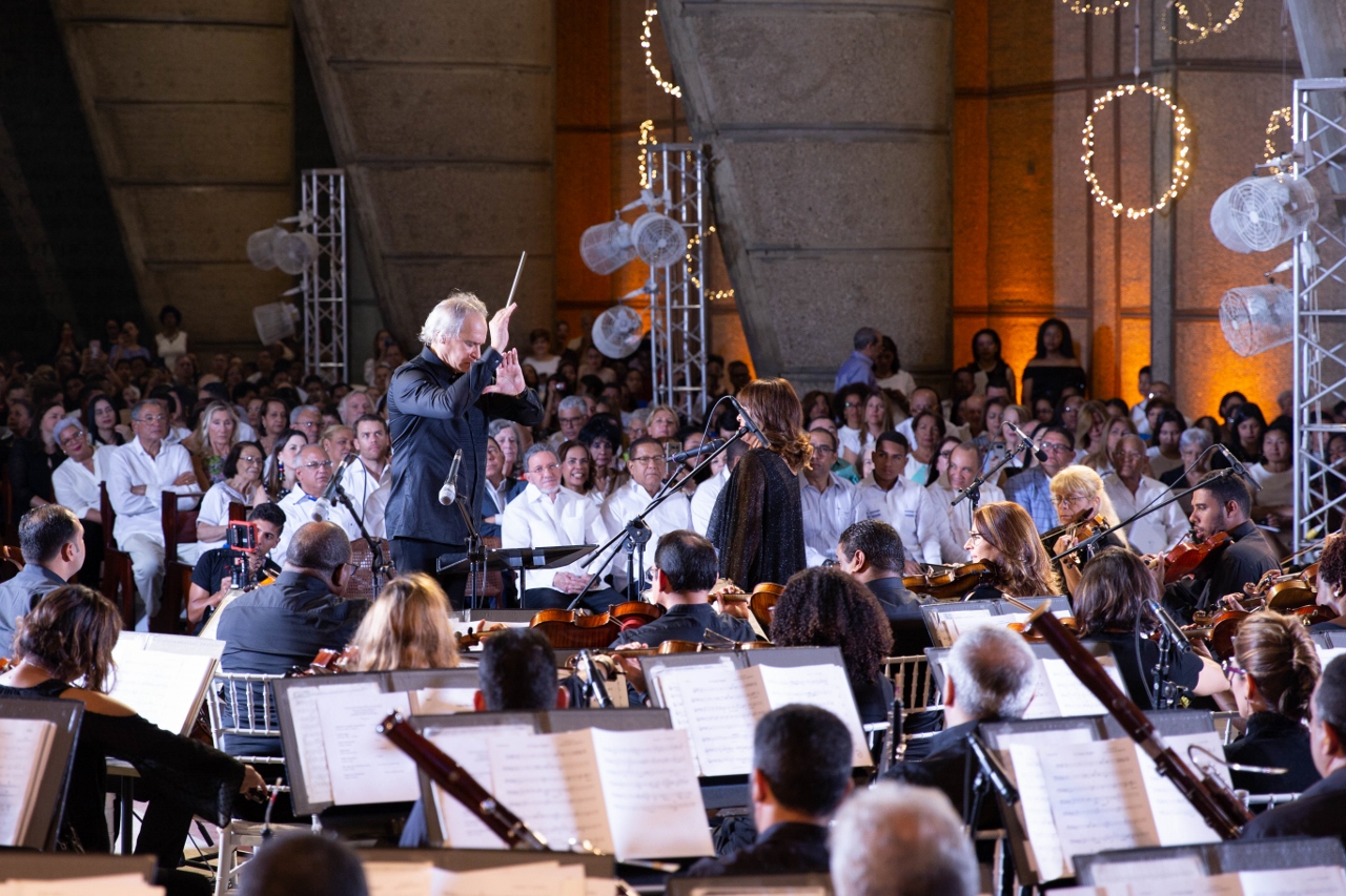 Durante la gala, el merengue sirvió como hilo conductor de los villancicos y canciones más representativas de la Navidad, junto a la Orquesta Sinfónica Nacional y al coro Koribe de la profesora Nadia Nicola.