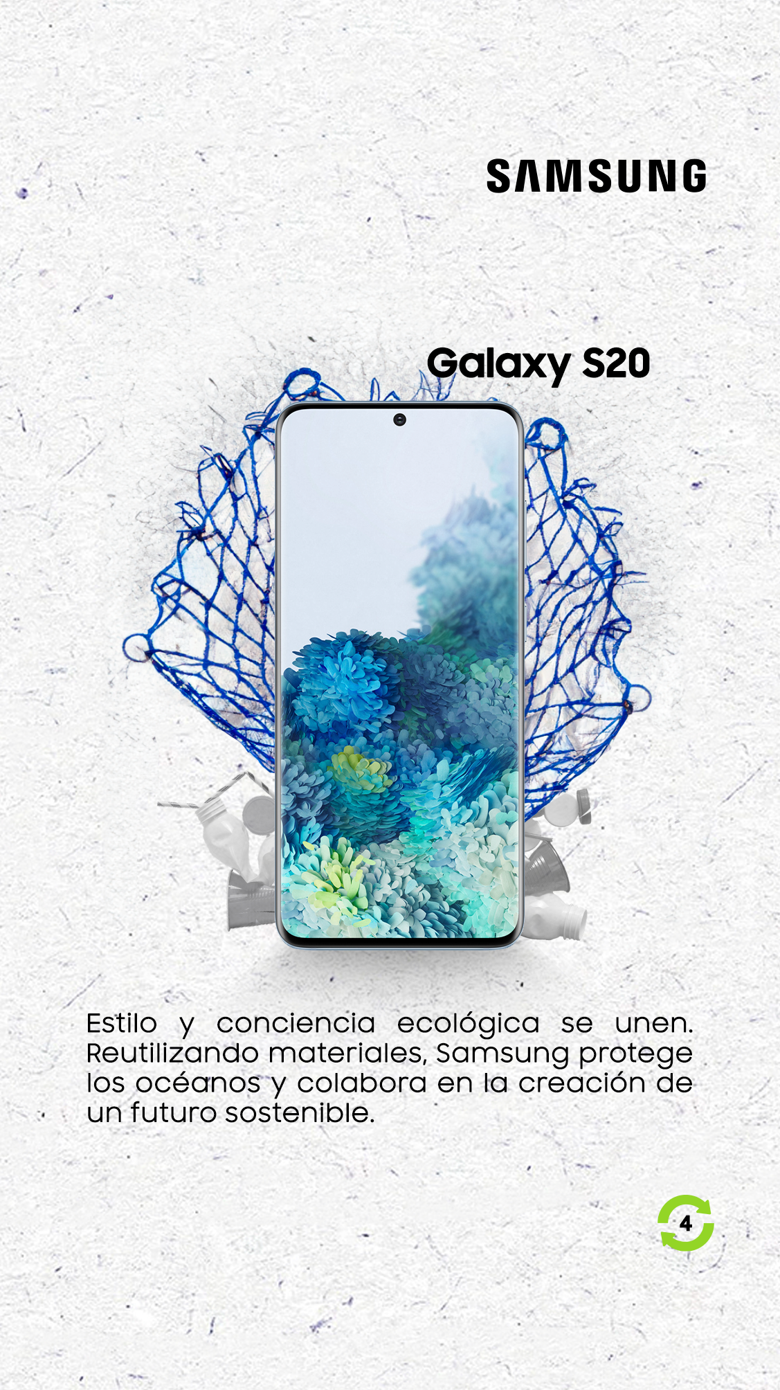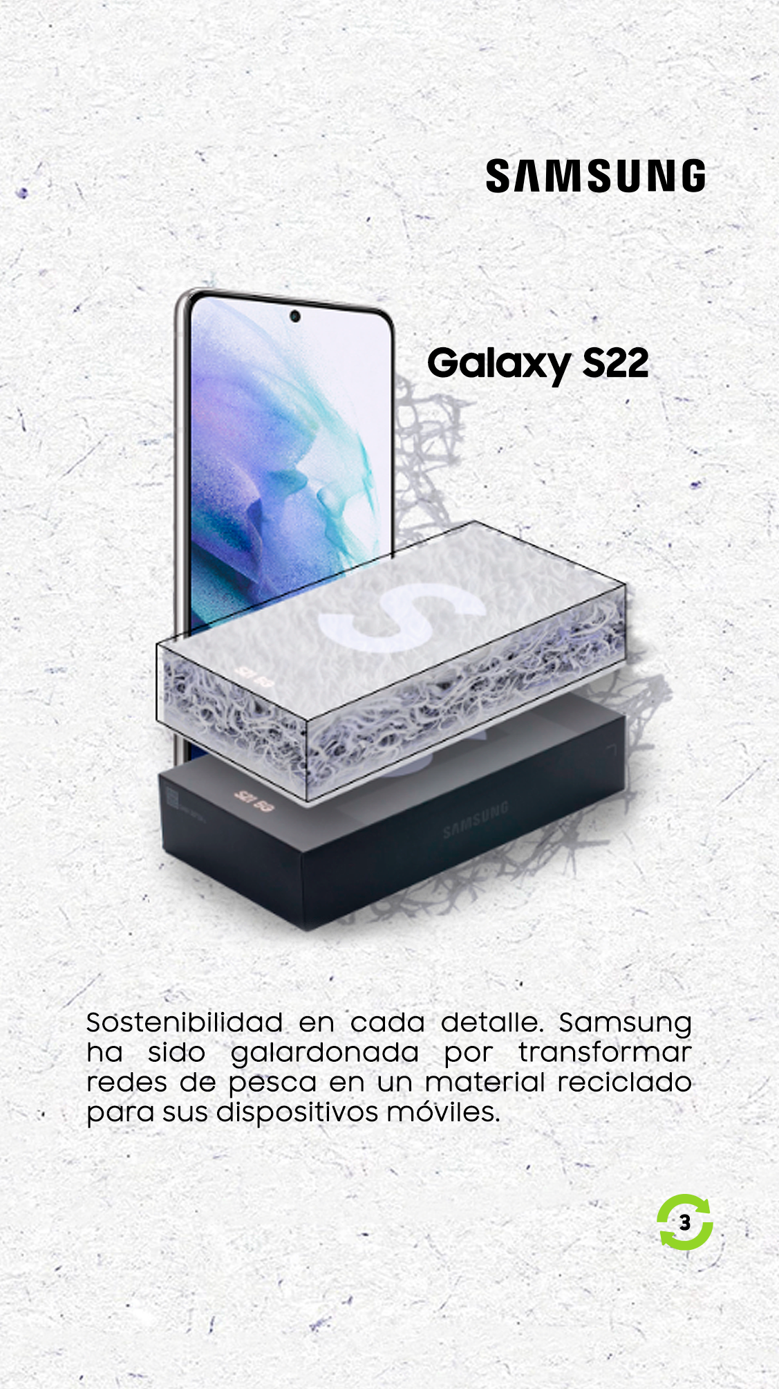 Los primeros productos de Samsung que incorporaron materiales reciclados fueron Galaxy S20, Galaxy Note 20, Galaxy Z Flip, y Galaxy Tab S7 y S7+, así como la serie Galaxy S21, Galaxy S22, Galaxy Z Fold 3 y Z Flip 3 y, sin duda, se convirtieron en el inicio de una revolución verde en la industria.