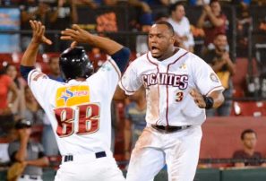 Por las Estrellas, que pierden por tercera ocasión seguida, Domingo Leyba, cuadrangular y sencillo en cuatro visitas al plato, con una anotada y otra remolcada.