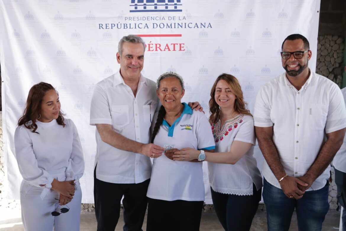 El presidente de la República, Luis Abinader y la directora general del programa Supérate, Gloria Reyes incluyeron 150 nuevos beneficiarios y beneficiarias de la Isla Saona a los subsidios sociales Aliméntate y Bono Luz, durante la jornada del proyecto Saona Sostenible.