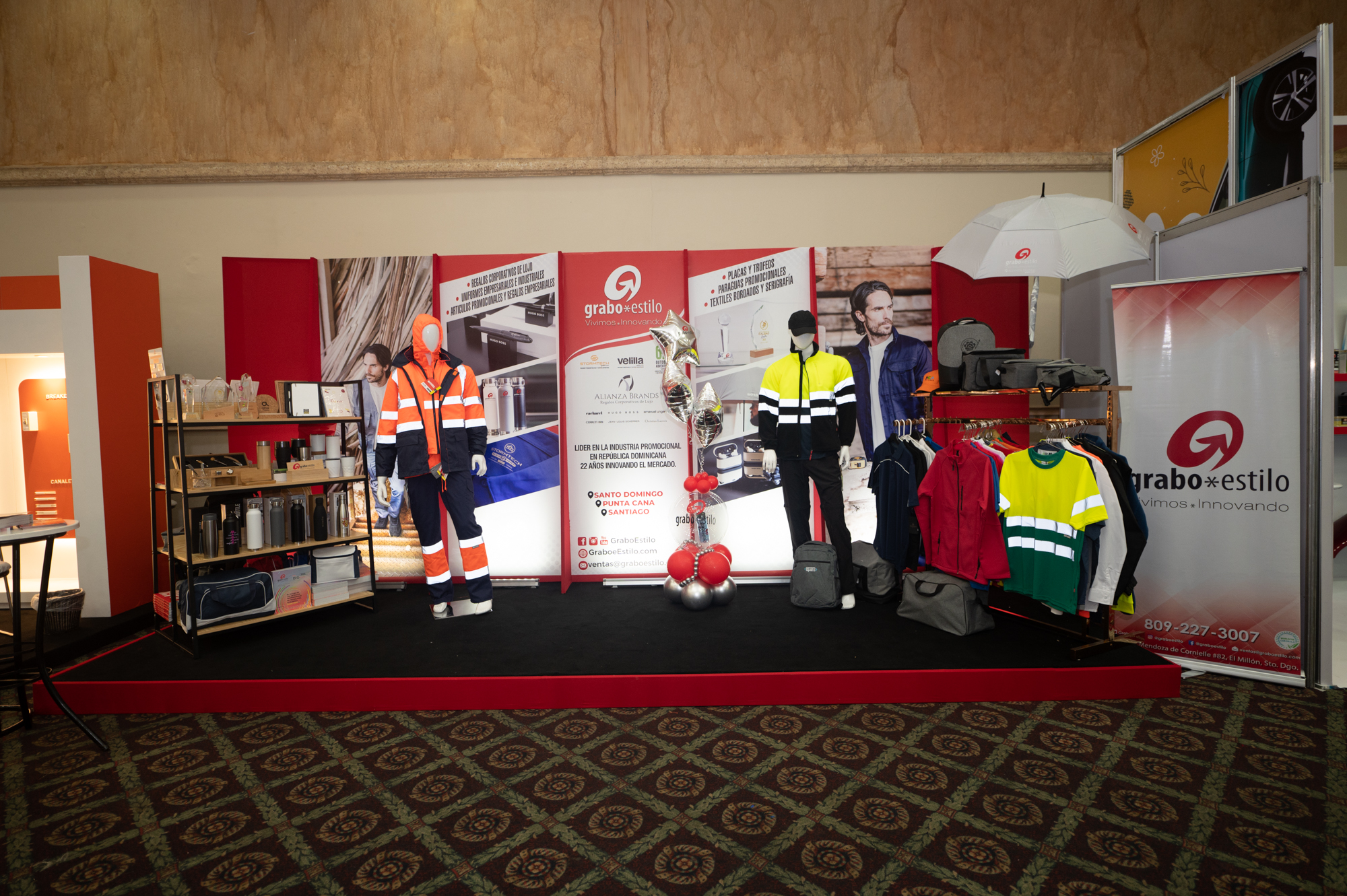 Así mismo agregar y presentar toda una variedad de líneas Premiun en textiles como Storm-tech by Grabo Estilo: línea de polos Especiales para la alta gerencia y eventos importantes como el Golf y otras disciplinas deportivas y comerciales, por igual se presentó en la línea de textiles Premiun la prestigiosa marca Velilla by grabo Estilo que reúne toda una colección de piezas especiales para hostelería, construcción, minería, industria, oficina, alimentos, entre otros.
