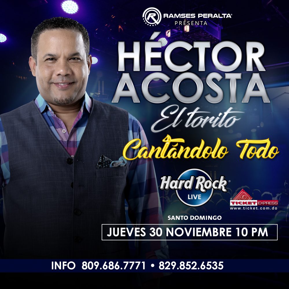 Luego de sus memorables conciertos en el Carnegie Hall de Nueva York y en el Anfiteatro de Puerto Plata, la magia musical del artista Héctor Acosta “El Torito” se hará sentir el próximo 30 de noviembre en el escenario de Hard Rock Live de Blue Mall.