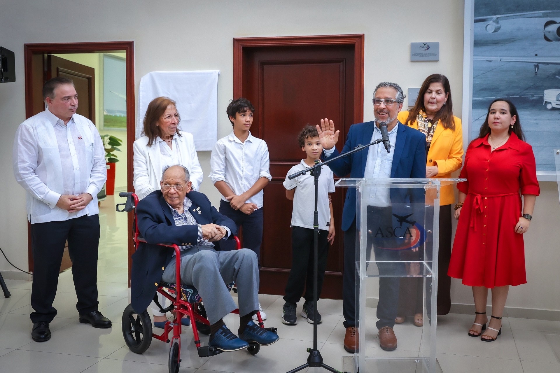 El acto, presidido por el director general del IDAC, Héctor Porcella, reunió a importantes figuras del ámbito aeronáutico del país. Porcella destacó la relevancia de Polanco para la aviación dominicana, señalando que su legado trasciende las fronteras nacionales. «Por su condición de piloto, comunicador y promotor del desarrollo aeronáutico en el país, Franklin Polanco es parte de la historia de la aviación, más allá de nuestras fronteras», afirmó durante la ceremonia, al develar una tarja con el nombre del homenajeado en el recinto de la ASCA.