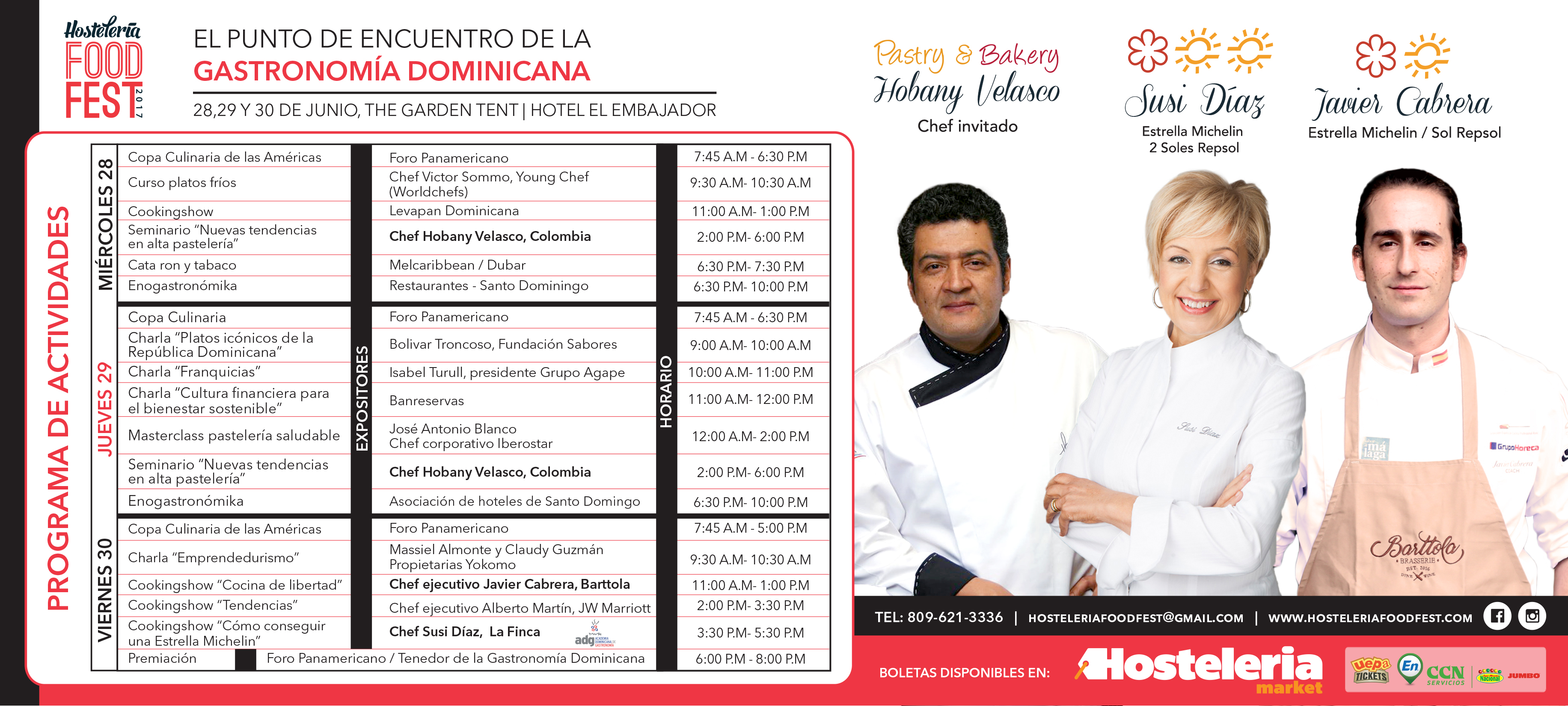 Hosteleria Food Fest 2017 es el punto de encuentro de la gastronomía profesional más importante del caribe, dedicado al sector hostelero, de alimentos y bebidas. Evento realizado por Hostelería News, bajo la dirección de Marcelle Alvarez y sus aliados ASONAHORES, ADERES y ADOCHEF.