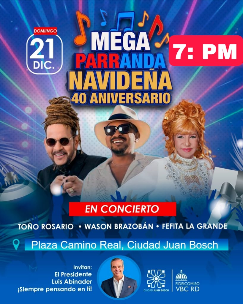 La alegría de la Navidad se siente con más fuerza que nunca. Hoy, domingo 21 de diciembre, la plataforma La Mega Parranda Navideña llega a la Plaza Camino Real de Ciudad Juan Bosch, prometiendo una noche histórica para las familias de Santo Domingo Este.