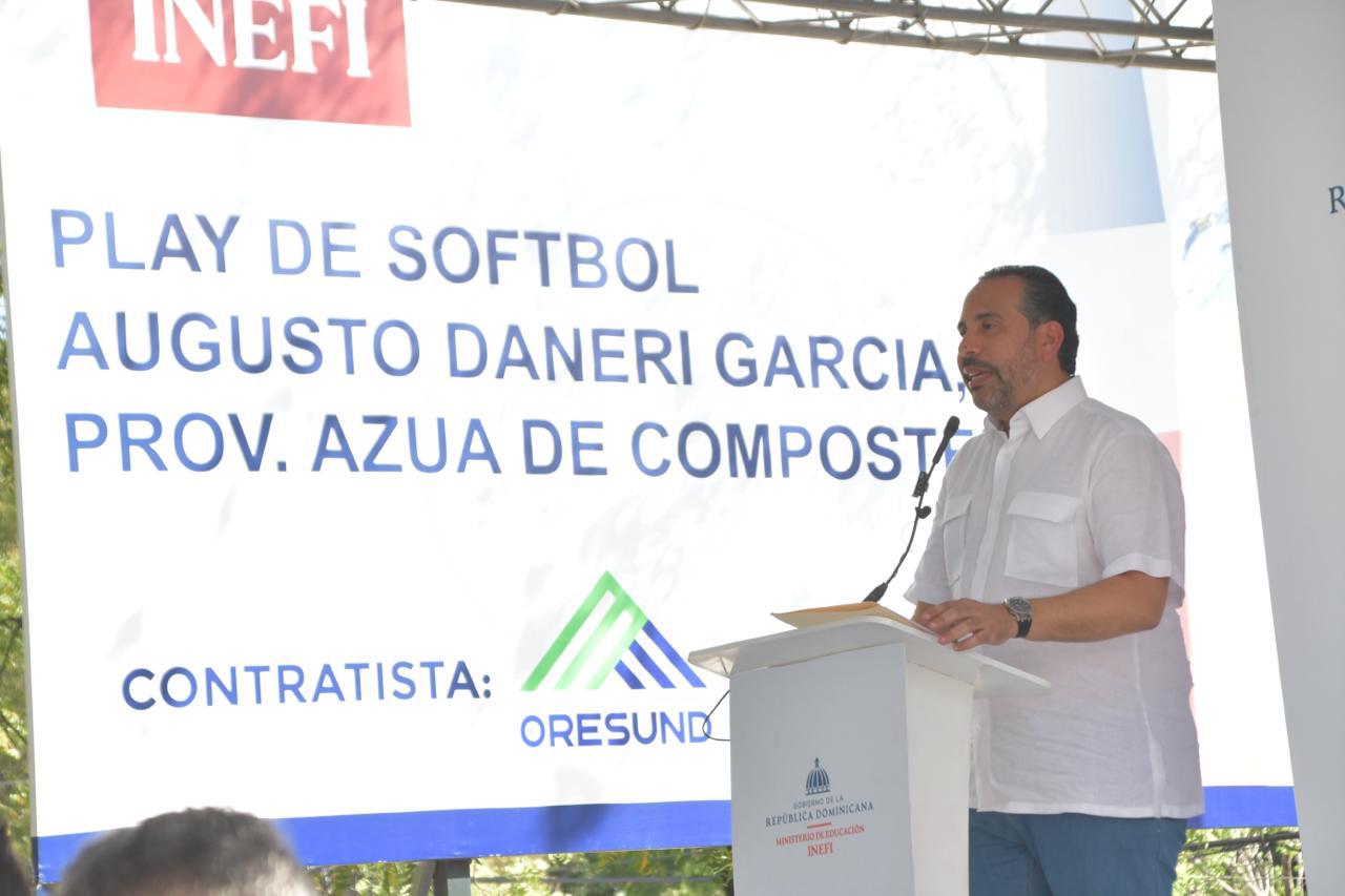 AZUA DE COMPOSTELA, AZUA.- El Instituto Nacional de Educación Física inauguró este martes el estadio de sóftbol y pequeñas ligas Augusto Daneri García, instalación deportiva que fue restaurada y remodelada por el INEFI con el apoyo del presidente Luis Abinader Corona, quien estuvo representado por el ministro de la Presidencia, Joel Santos; al igual que el Comisionado Nacional de Béisbol, Junior Noboa.