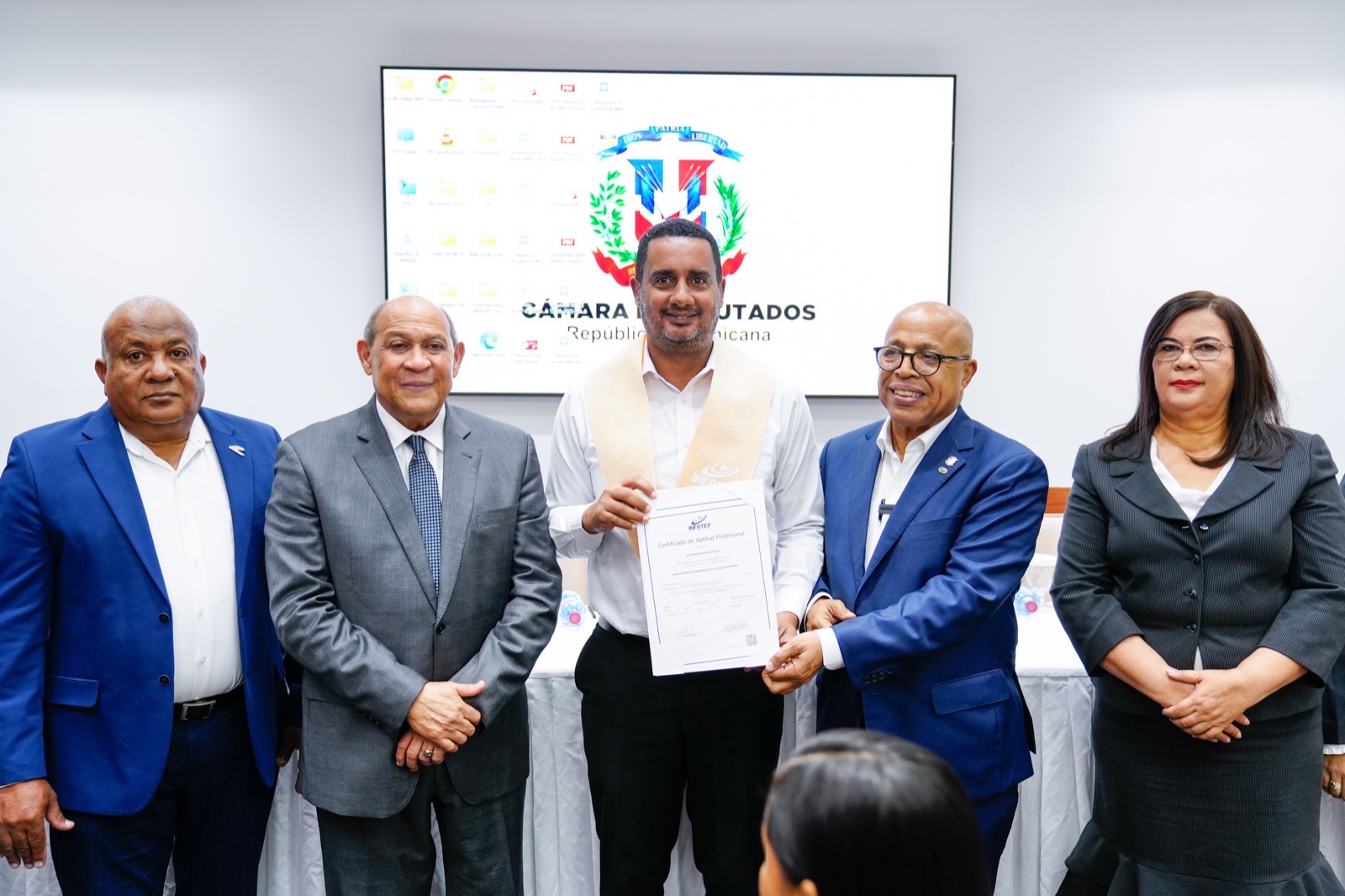 El Instituto Nacional de Formación Técnico Profesional (INFOTEP) llevó a cabo un emotivo acto de entrega de 610 certificados a 287 colaboradores de la Cámara de Diputados, quienes culminaron con éxito su formación en diversas ocupaciones.