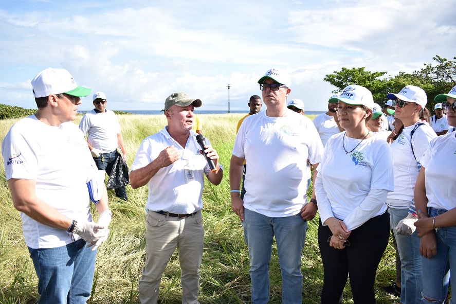 Setenta colaboradores del INFOTEP, junto a sus familias, llegaron desde Santiago, Puerto Plata y el Distrito Nacional, para participar en el operativo de recolección de desperdicios, que contó con el apoyo del Ministerio de Medio Ambiente, la Cooperativa de empleados y la Asociación de Servidores Públicos del INFOTEP (ASP-INFOTEP).
