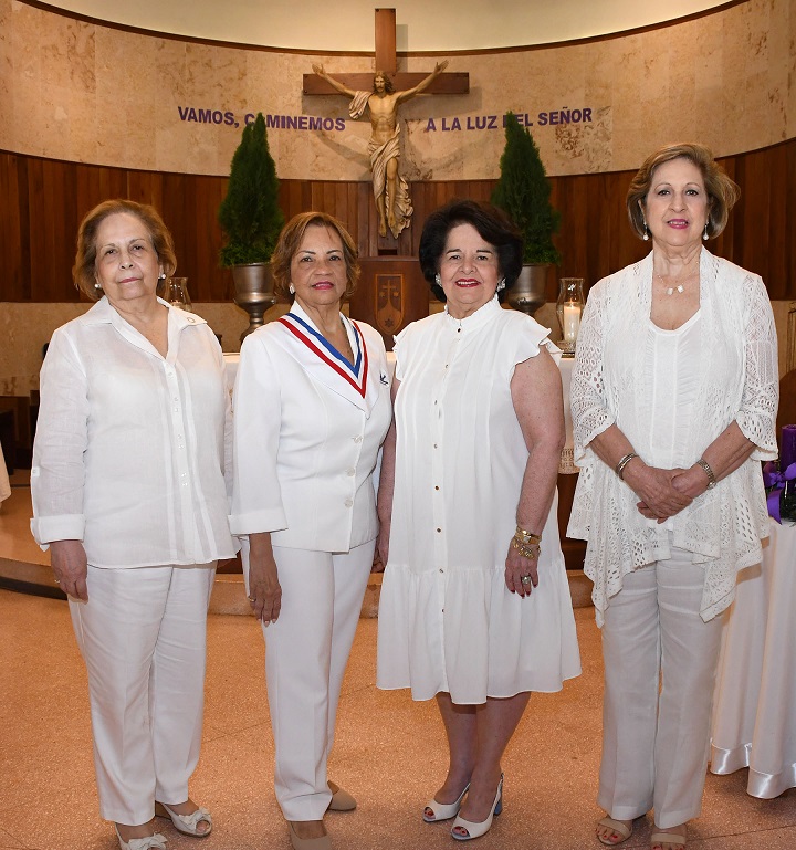 Las damas voluntarias, todas vestidas con sus uniformes blancos como es tradición, hicieron las lecturas del día y presentaron las ofrendas, las cuales iniciaron con la presentación de la bandera dominicana, a seguidas, la bandera de ADOVOHS, el uniforme blanco de servicio, la vela encendida, el pan y vino.