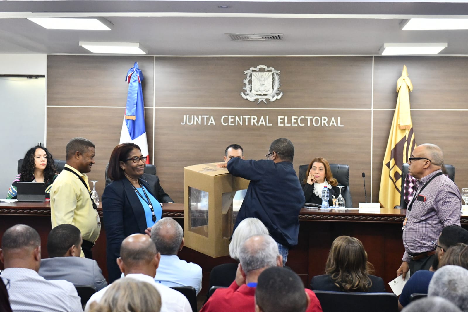 Estuvieron presentes también Ramón Urbáez, coordinador de Juntas Electorales; Lenis García Guzmán, directora de Partidos Políticos; Juan Bautista, director de Inspectoría; el mayor general Juan José Otaño Jiménez, jefe de la Policía Militar Electoral; y el subjefe de la Policía Militar, general Juan Carlos Jiménez Hernández; así como miembros y secretarios de las Juntas Electorales y delegados del PRM.
