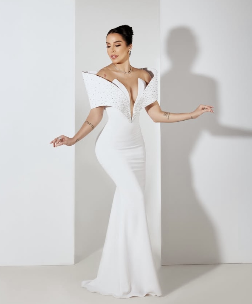 Para esta noche especial, Pereira eligió un diseño exclusivo confeccionado a la medida por la reconocida diseñadora Suzelle Taveras, una pieza que fusiona sofisticación y vanguardia, destacando su figura con líneas delicadas y acabados de lujo. El estilismo estuvo a cargo del afamado asesor de imagen Erick González, quien se encargó de potenciar su presencia con una propuesta moderna y audaz.