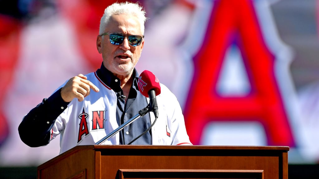 El dueño del equipo Arte Moreno y el gerente general Billy Eppler le presentaron a Maddon un jersey con el número 70.