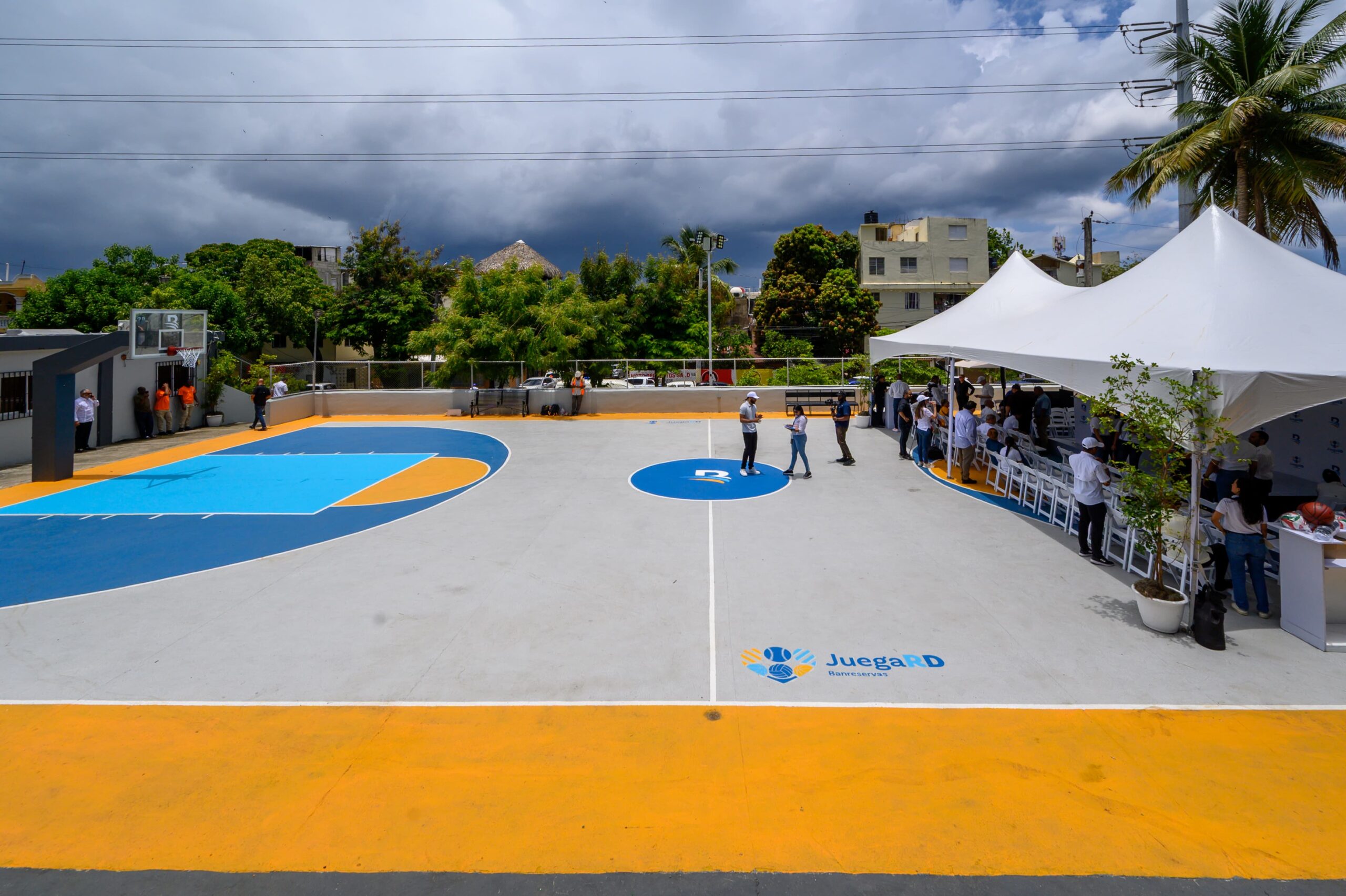 Los comunitarios del Ensanche La Paz y sectores aledaños, en el Distrito Nacional, ahora tienen su cancha de baloncesto remozada por el Banco de Reservas, bajo el programa de adecentamiento de espacios deportivos “Juega RD”.