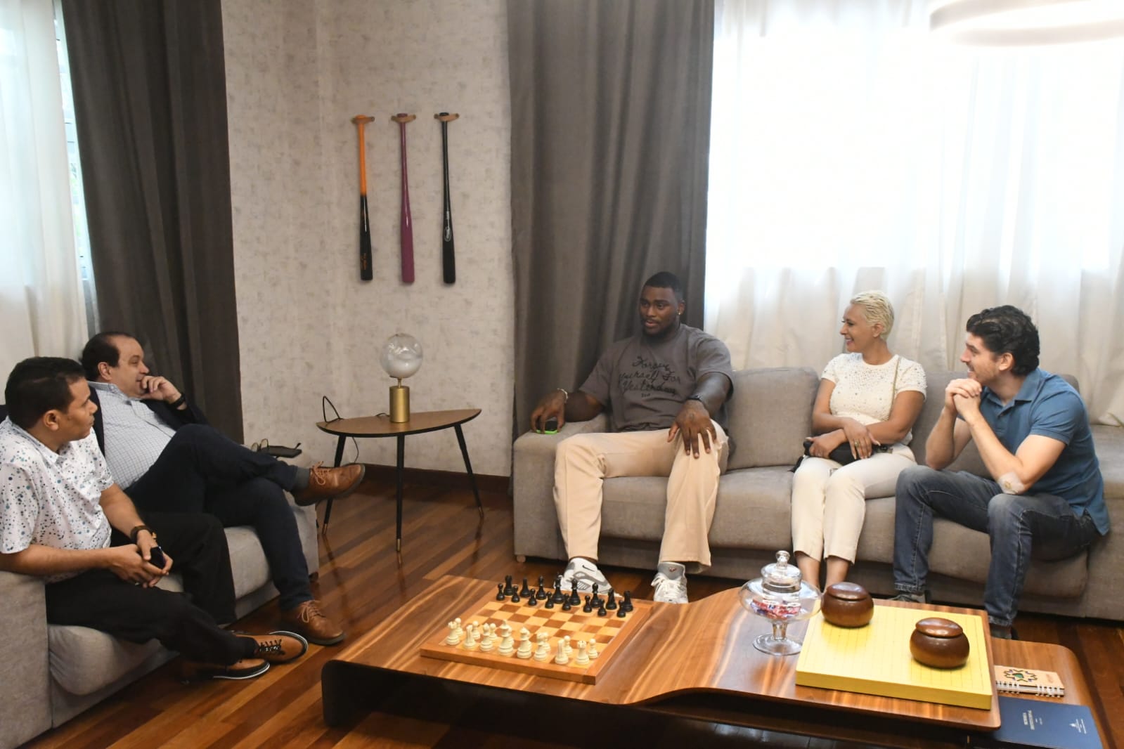 Estuvo acompañado por su hermano Ismael Matos García, quien también se propone intentar llegar a la NFL a través del International Player Pathway, el programa que sirvió de plataforma a Matos en su recorrido hacia el fútbol americano. Además le acompañaron Agrys Gil, publicista y asistente de Matos y Eros Braccin, presidente de la Federación Dominicana de Fútbol Americano.