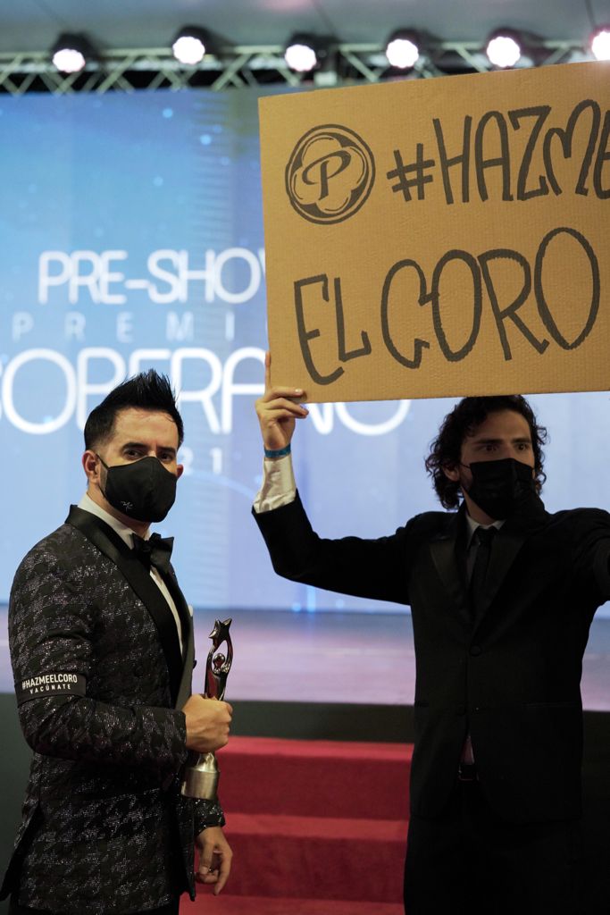El cantautor Manny Cruz, uno de los artistas más nominados de la noche, fue el vocero principal de esta acción, enviando un mensaje a todos los espectadores. “Estoy feliz de estar aquí esta noche, luego de tanto tiempo, justamente de la mano de Presidente y su campaña #HazmeElCoro, con la que queremos seguir motivando a la gente a que se vacune y juntos volver a celebrar Premios Soberano como antes”, expresó Cruz.