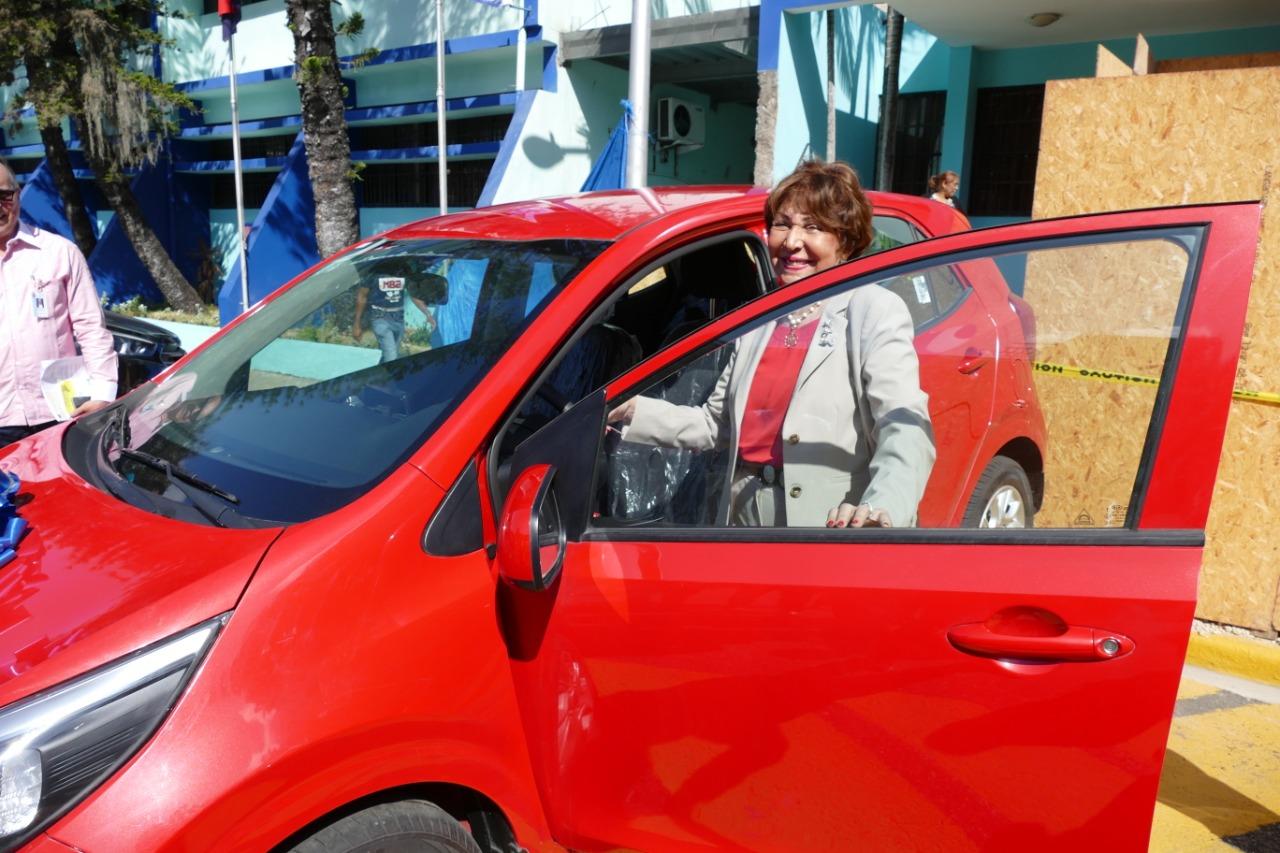Se trata de un moderno automóvil marca KIA, modelo Picanto, año 2018, entregado a la señora Ana Teresa Margarita Pérez Báez, quien resultó ganadora luego de que su código de usuaria fuera extraído de urna electrónica.
