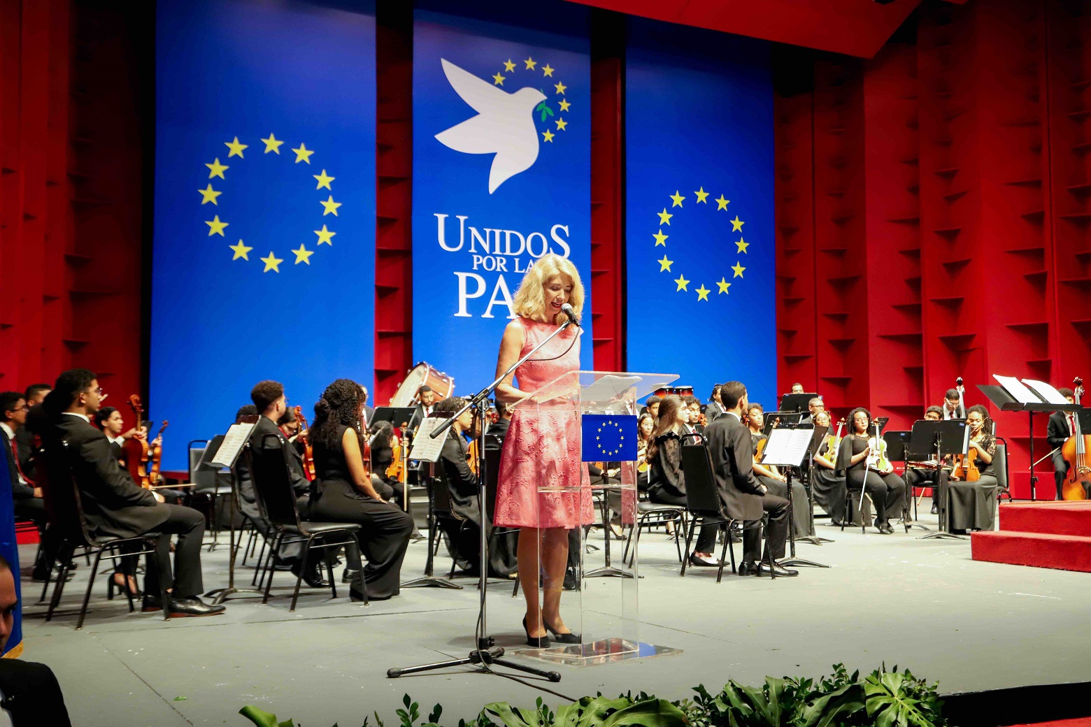 Durante su discurso, la Embajadora de la Unión Europea, Katja Afheldt, estableció “Tenemos que defender este proyecto de paz, este sueño. Se lo debemos a la generación de nuestros hijos. A ellos les debemos todos los esfuerzos posibles para crear un mundo que ofrezca posibilidades de prosperar, y que sea seguro y respetuoso con la coexistencia pacífica de los seres humanos y la naturaleza”.