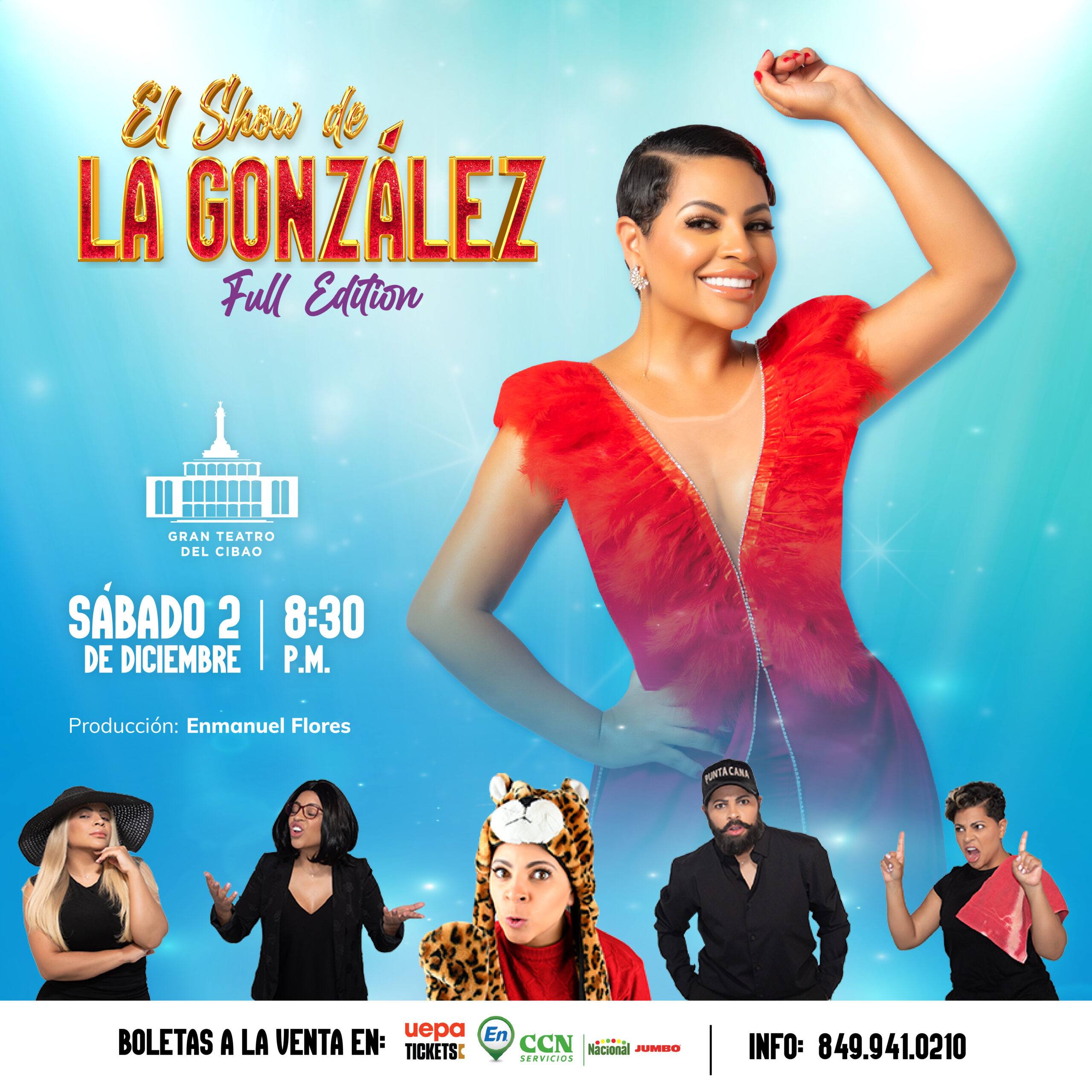 Bajo la experta producción de Enmanuel Flores, La González presentará un espectáculo que combina la creatividad y el humor en su máxima expresión. Luego de su exitosa actuación en el Teatro La Fiesta del hotel Jaragua, La González promete superarse a sí misma y sorprender al público santiaguero.