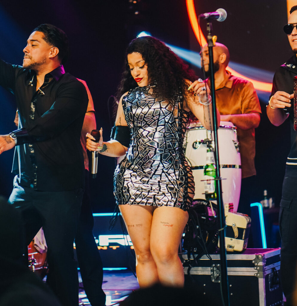 El espectáculo ya estaba cargado de energía tras las presentaciones de Ivy Queen y Tito El Bambino, quienes dejaron al público completamente encendido. Luego, la agrupación típica El Grupaso tomó el escenario, llenando el espacio de merengue, tradición y sabor dominicano, poniendo a todos a mover el cuerpo.