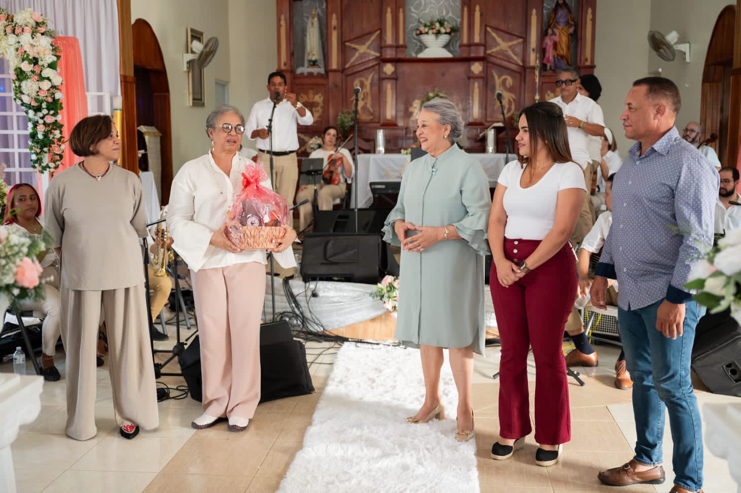 El concierto también sirvió como escenario para rendir un homenaje póstumo a la educadora Juanita Tejada de Taveras, figura emblemática de la comunidad por su labor incansable en favor de la educación, la fe y la cohesión social. La semblanza de su vida fue leída por su hija, Carmen Yris Taveras, acompañada de sus hermanas Josefina, Rosa y Gladys, quienes recibieron una placa de reconocimiento entre lágrimas, aplausos y memorias compartidas.