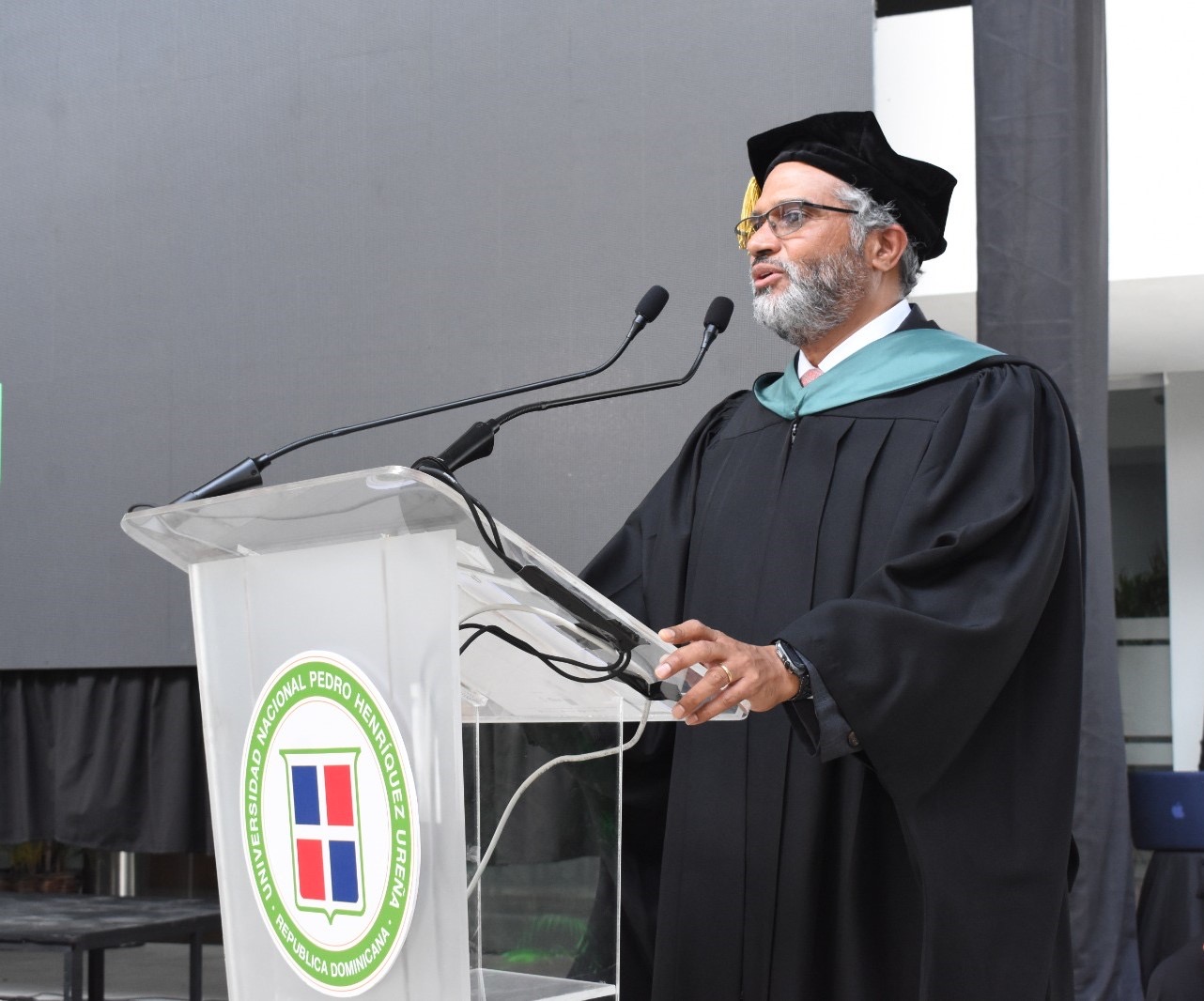 Durante el discurso de graduación, el arquitecto Miguel Fiallo Calderón, rector de la UNPHU, enfatizó la importancia de integrar tecnología e investigación en la oferta académica universitaria. Expresó: «Las universidades deben adaptar sus programas académicos e investigativos para responder con agilidad a las demandas cambiantes de la industria en plazos más cortos y mercados cada vez más especializados. Esto les brinda una ventaja crucial en el mundo tecnológico actual, permitiendo a los nuevos profesionales adaptarse a los avances tecnológicos y desarrollar habilidades para adaptarse, aprender y crecer continuamente».